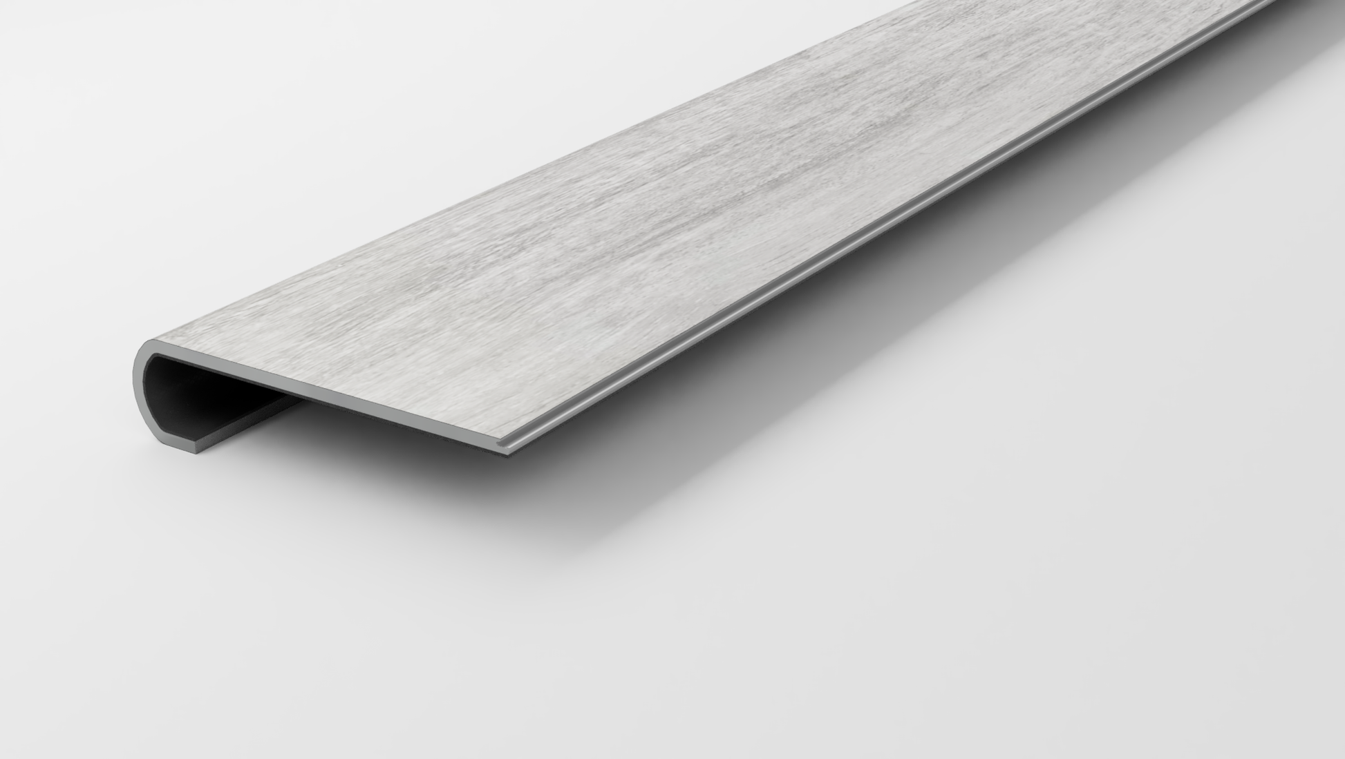 Made from Duralux Performance Alpine Summit flooring, this Stair Nose will now allow you to use your favorite flooring on your stairs. Previously, you would have to use other tread brands that were made of subpar materials and only looked similar to your flooring! To make matters worse, a transition piece was often required at the top of the stairs posing both a hazard, and an eye sore. Treads Plus has made it possible to use true Duralux Performance* Alpine Summit flooring to seamlessly transition from your flooring to your stairs.