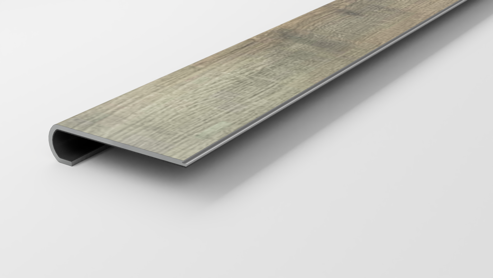 This variant is a Stair Nose made from a MSI Everlife Ashton Maracay Brown Luxury Vinyl Plank. It is designed to be fitted and glued to the unfinished Stair Tread Nose. An addition MSI Everlife Ashton Maracay Brown plank that you supply can be clicked in behind the nose to cover the remaining unfinished area.
