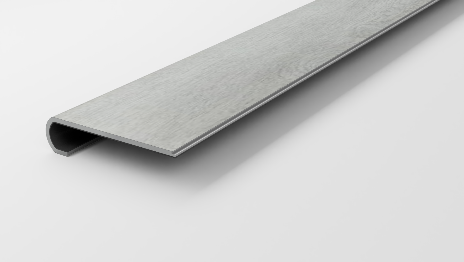 This variant fits 1-1/8 inch stair noses and has a length of 42 inches. It comes in a beautiful Bullnose design.