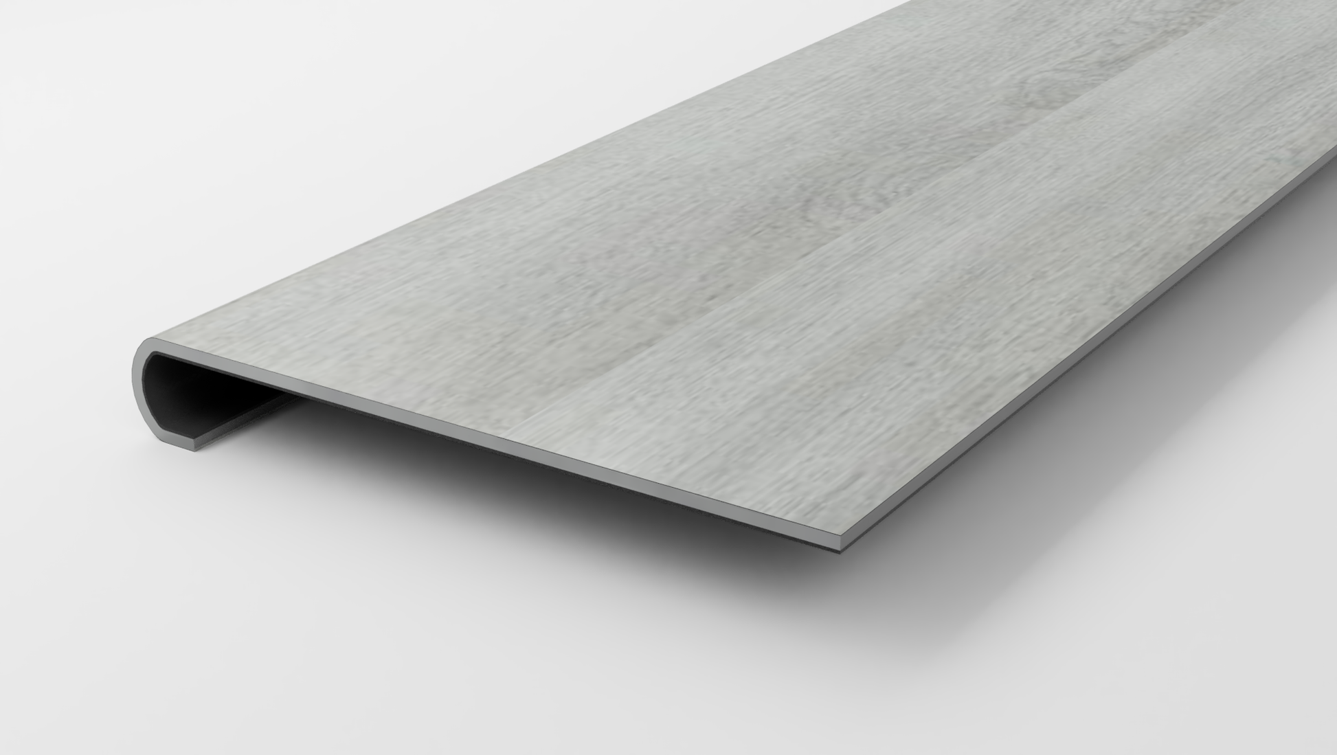 Made from Home Decorators Collection Athabasca Glacier Gray flooring, this Stair Nose will now allow you to use your favorite flooring on your stairs. Previously, you would have to use other tread brands that were made of subpar materials and only looked similar to your flooring! To make matters worse, a transition piece was often required at the top of the stairs posing both a hazard, and an eye sore. Treads Plus has made it possible to use true Home Decorators Collection* Athabasca Glacier Gray flooring to seamlessly transition from your flooring to your stairs.