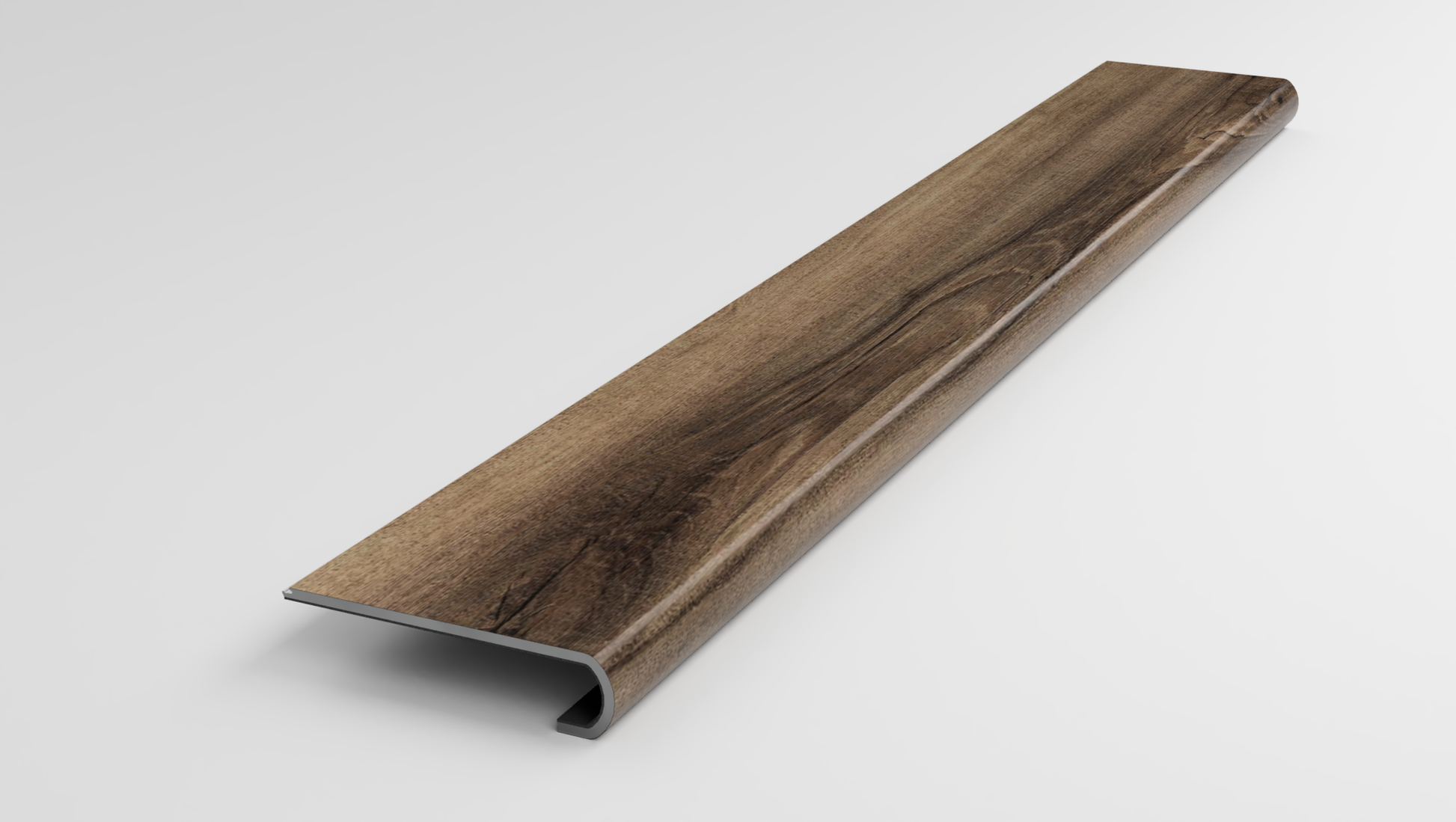 This variant is a Stair Nose made from a NuCore Auburn Oak Luxury Vinyl Plank. It is designed to be fitted and glued to the unfinished Stair Tread Nose. An addition NuCore Auburn Oak plank that you supply can be clicked in behind the nose to cover the remaining unfinished area.