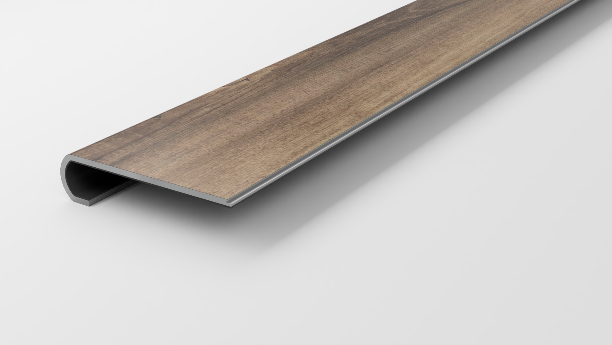This variant fits 1-1/8 inch stair noses and has a length of 42 inches. It comes in a beautiful bull nose design.