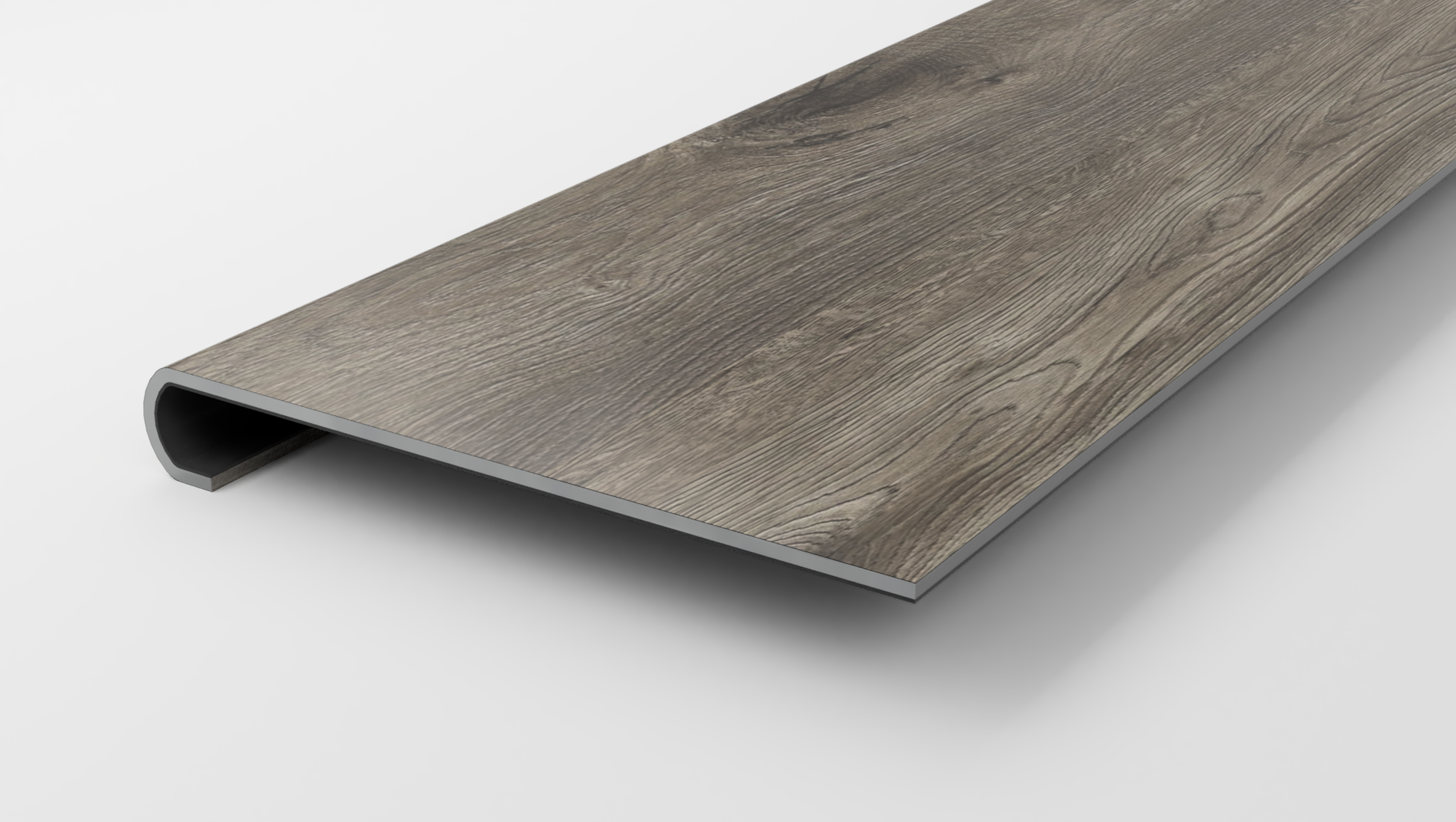 This variant is a Stair Nose made from a NuCore Autumnwood Luxury Vinyl Plank. It is designed to be fitted and glued to the unfinished Stair Tread Nose. An addition NuCore Autumnwood plank that you supply can be clicked in behind the nose to cover the remaining unfinished area.