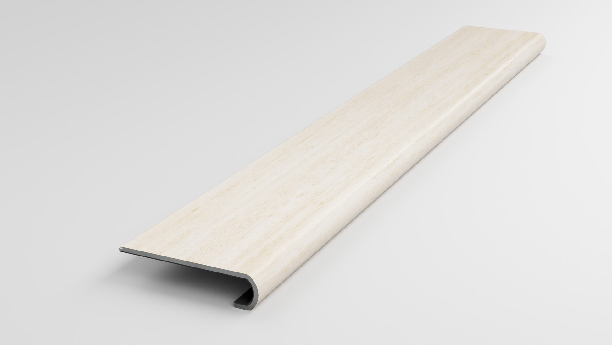 This variant is a Stair Nose made from a Duralux Performance Avorio Beige Luxury Vinyl Plank. It is designed to be fitted and glued to the unfinished Stair Tread Nose. An addition Duralux Performance Avorio Beige plank that you supply can be clicked in behind the nose to cover the remaining unfinished area.