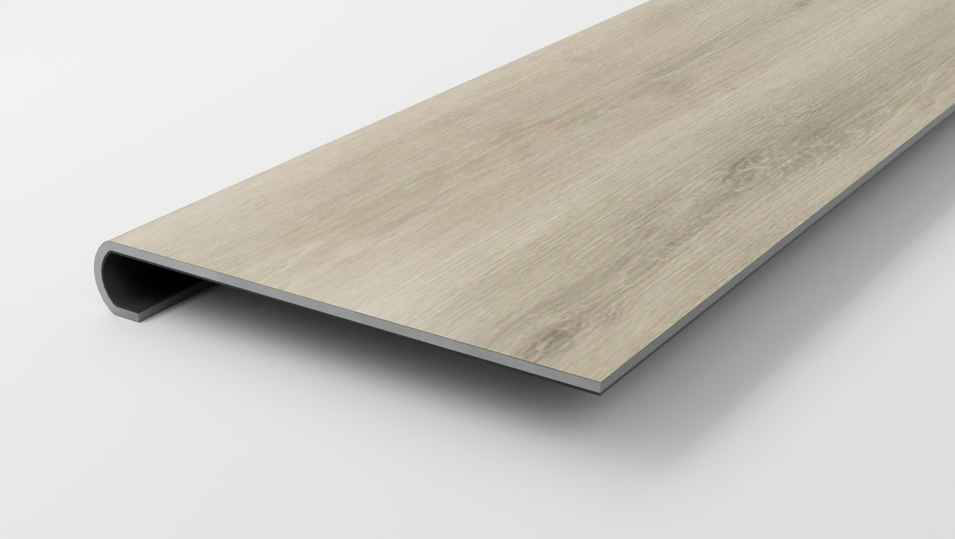 This variant is a Stair Nose made from a MSI Bailey Rayne Luxury Vinyl Plank. It is designed to be fitted and glued to the unfinished Stair Tread Nose. An addition MSI Bailey Rayne plank that you supply can be clicked in behind the nose to cover the remaining unfinished area.
