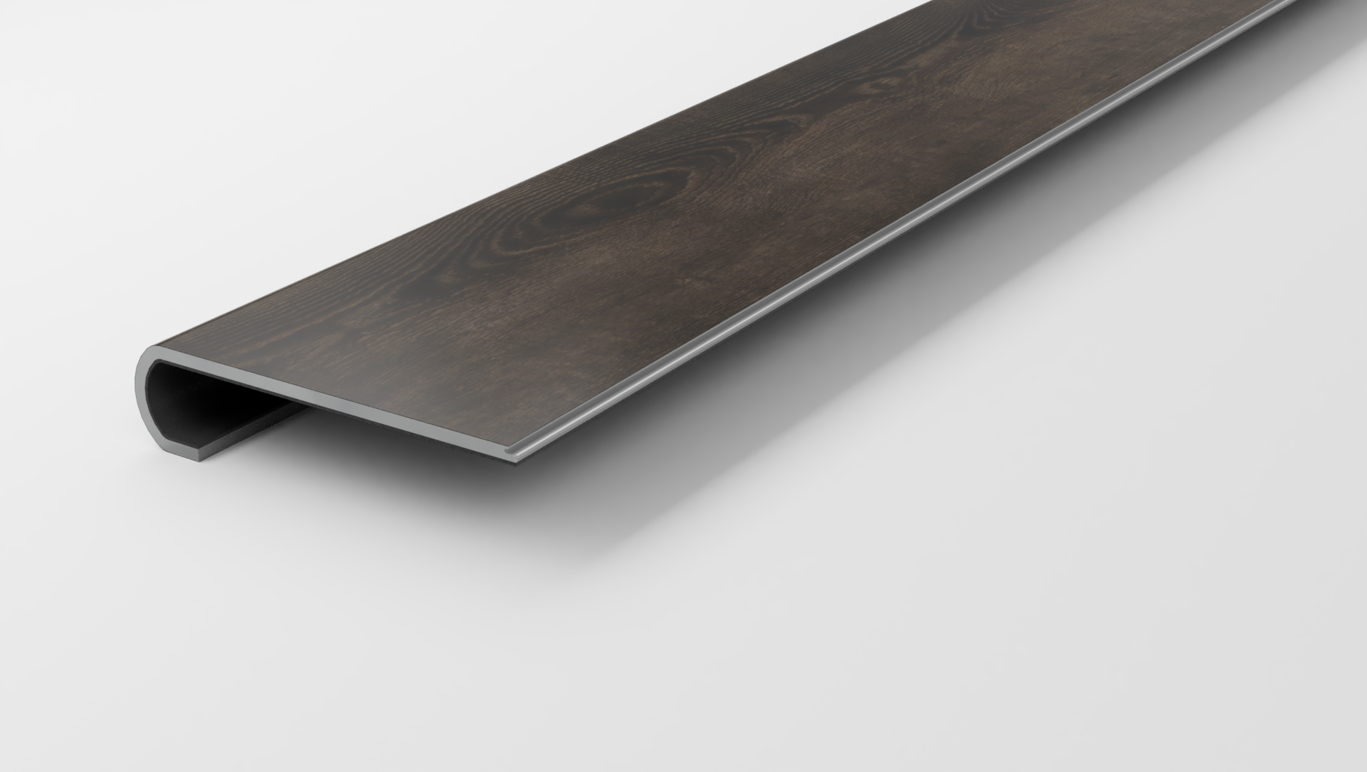 Made from NuCore Balkan Isle flooring, this Stair Nose will now allow you to use your favorite flooring on your stairs. Previously, you would have to use other tread brands that were made of subpar materials and only looked similar to your flooring! To make matters worse, a transition piece was often required at the top of the stairs posing both a hazard, and an eye sore. Treads Plus has made it possible to use true NuCore* Balkan Isle flooring to seamlessly transition from your flooring to your stairs.