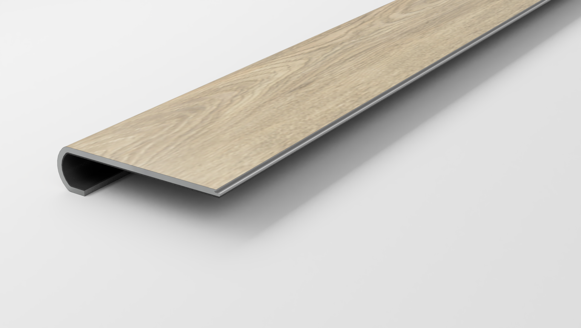 This variant is a Stair Nose made from a Lions Floor Dolce Luxury Vinyl Plank. It is designed to be fitted and glued to the unfinished Stair Tread Nose. An addition Lions Floor Dolce plank that you supply can be clicked in behind the nose to cover the remaining unfinished area.