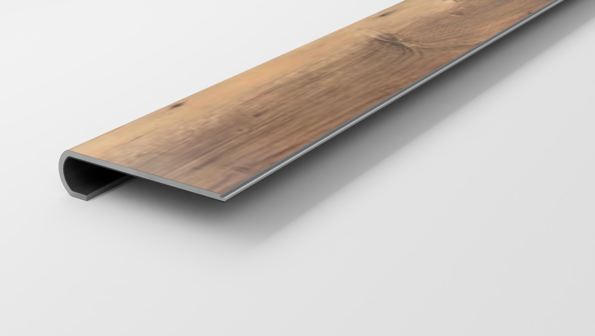 This variant fits 1-1/8 inch stair noses and has a length of 42 inches. It comes in a beautiful Bullnose design.