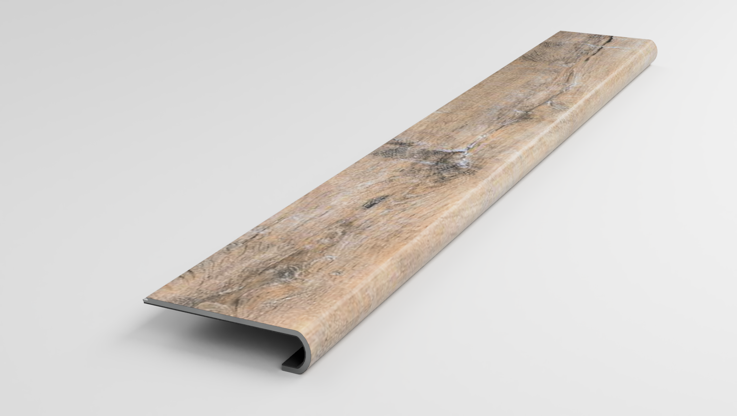 This variant is a Stair Nose made from a Home Decorators Bonnyneck Oak Luxury Vinyl Plank. It is designed to be fitted and glued to the unfinished Stair Tread Nose. An addition Home Decorators Bonnyneck Oak plank that you supply can be clicked in behind the nose to cover the remaining unfinished area.