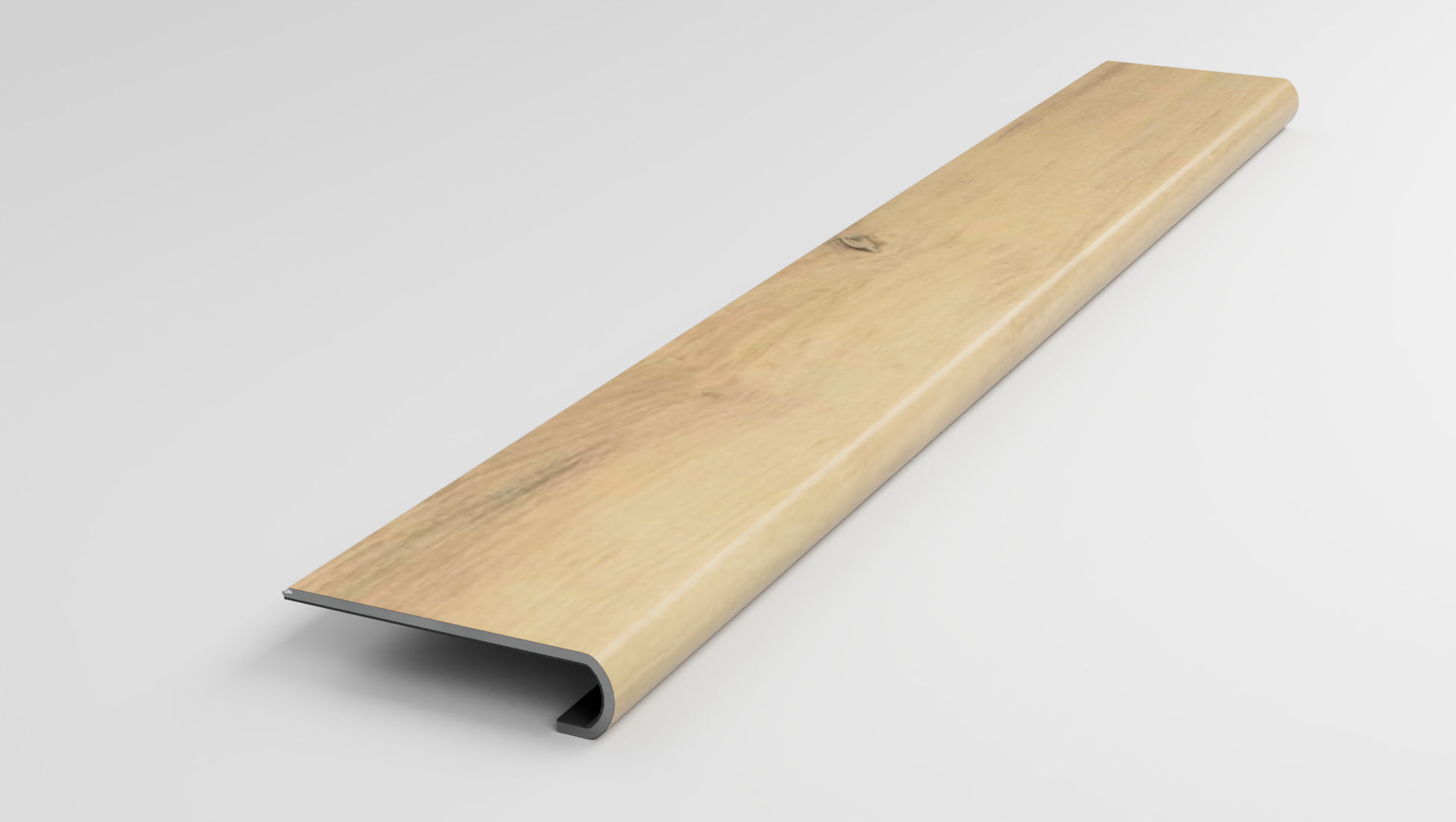 This variant is a Stair Nose made from a Shaw Breckenridge Cascade Luxury Vinyl Plank. It is designed to be fitted and glued to the unfinished Stair Tread Nose. An addition Shaw Breckenridge Cascade plank that you supply can be clicked in behind the nose to cover the remaining unfinished area.