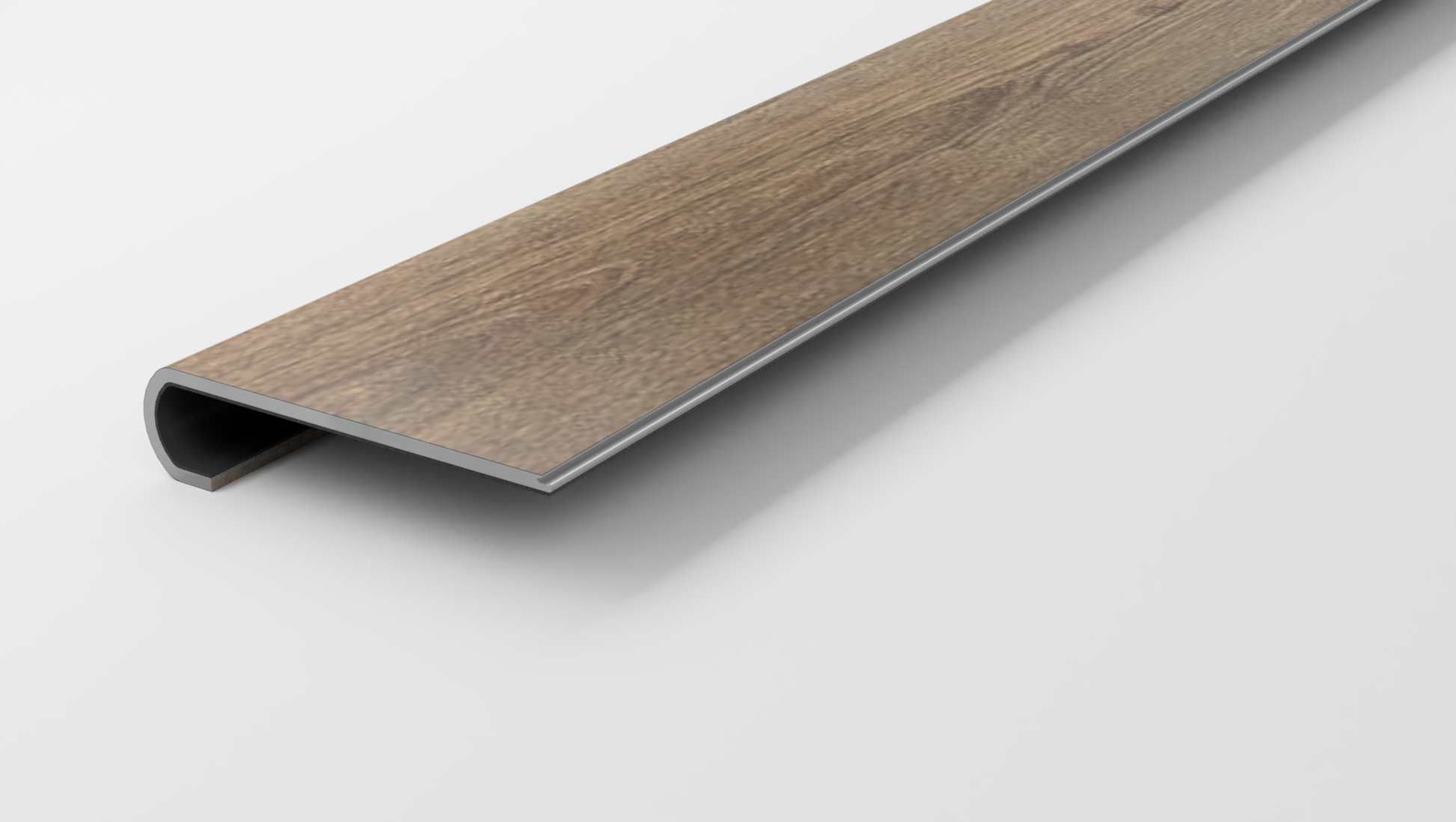 This variant fits 1-1/8 inch stair noses and has a length of 42 inches. It comes in a beautiful bull nose design.