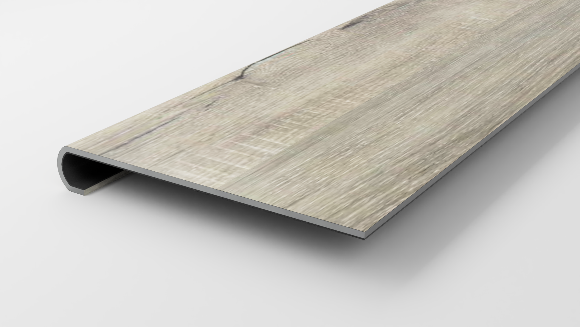 Made from Shaw* Brookside Mystic flooring, this Stair Nose will now allow you to use your favorite flooring on your stairs. Previously, you would have to use other tread brands that were made of subpar materials and only looked similar to your flooring! To make matters worse, a transition piece was often required at the top of the stairs posing both a hazard, and an eye sore. Treads Plus has made it possible to use true Shaw* Brookside Mystic flooring to seamlessly transition from your flooring to your stairs.