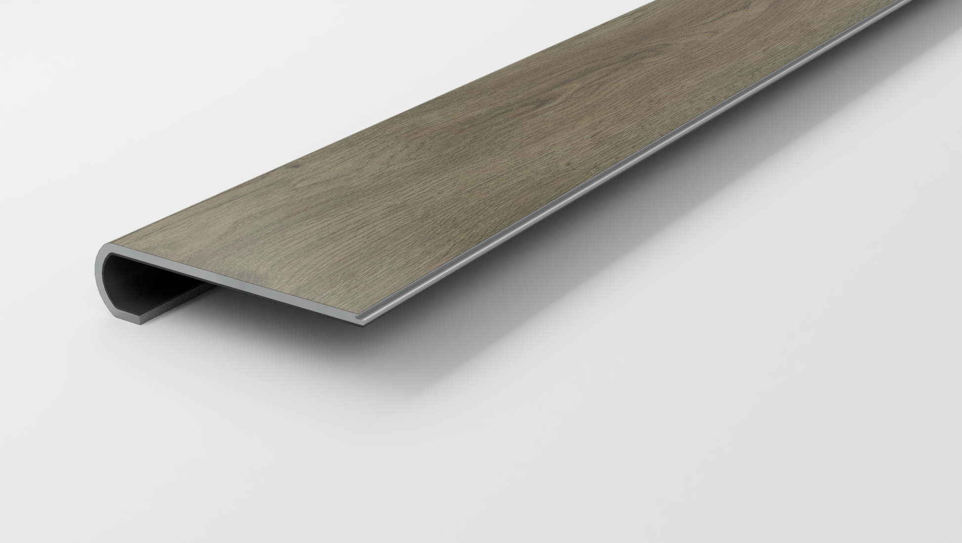 This variant fits 1-1/8 inch stair noses and has a length of 42 inches. It comes in a beautiful Bullnose design.