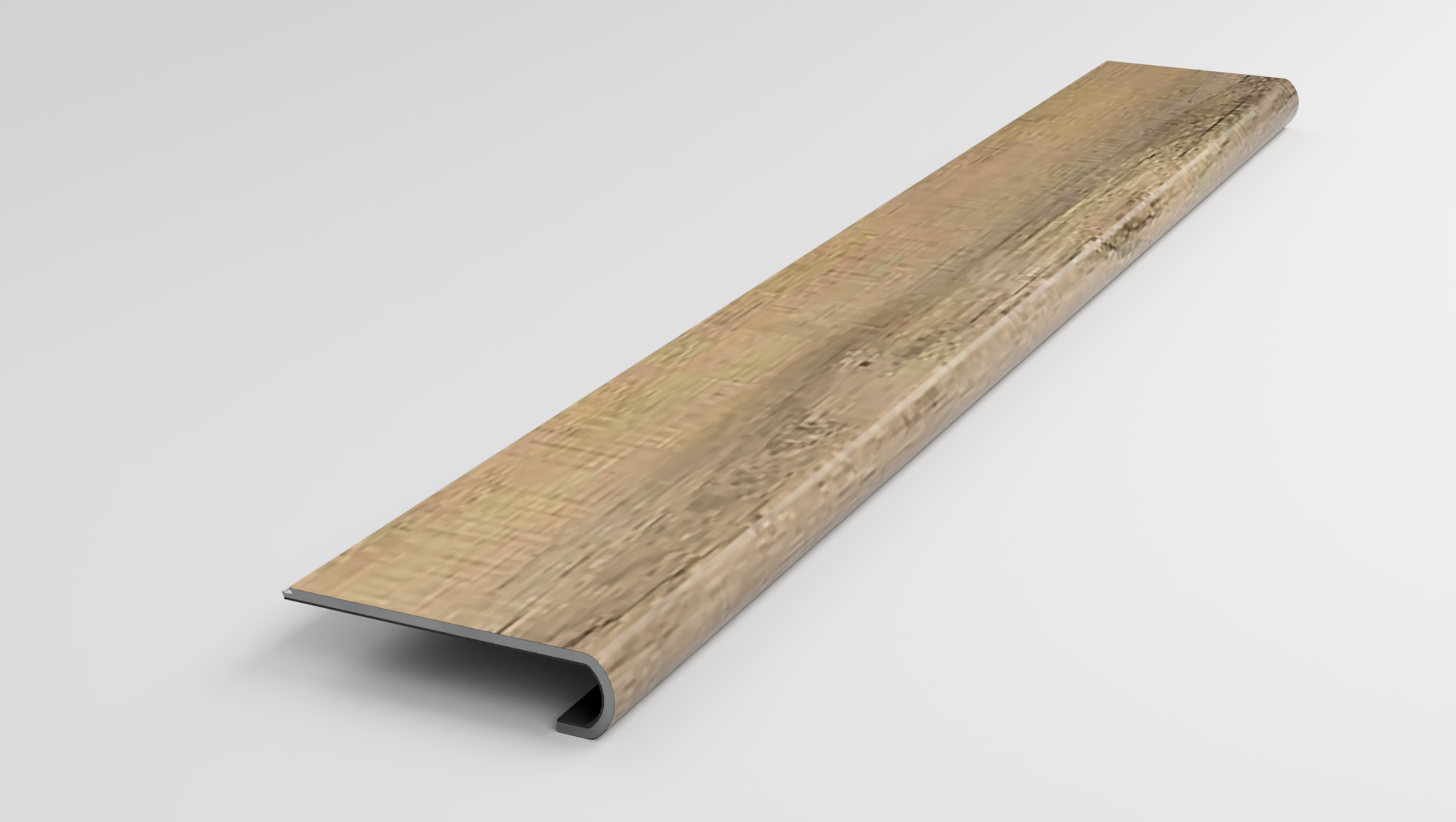 This variant is a Stair Nose made from a Coreluxe+* Charming Natural Luxury Vinyl Plank. It is designed to be fitted and glued to the unfinished Stair Tread Nose. An addition Coreluxe+* Charming Natural plank that you supply can be clicked in behind the nose to cover the remaining unfinished area.