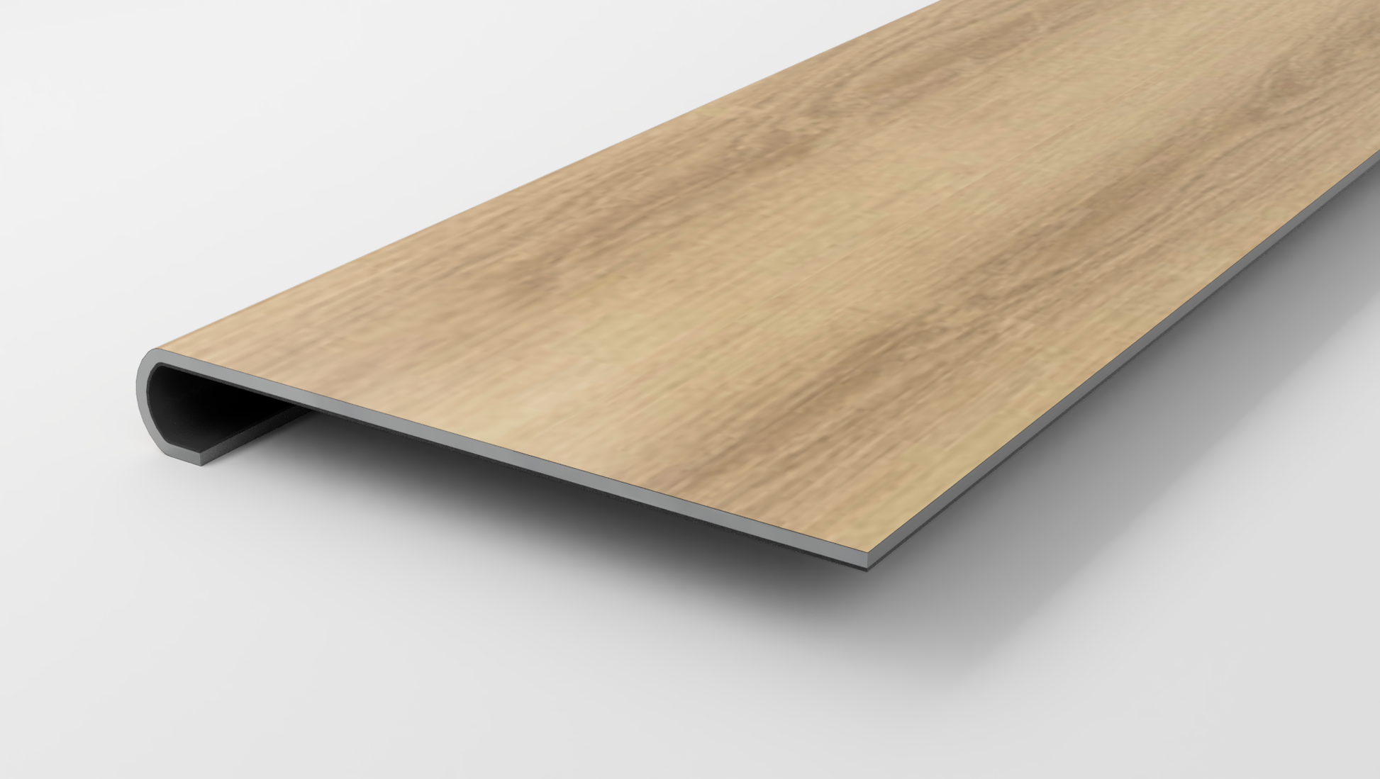 Made from FirmFit City Vibe flooring, this Stair Nose will now allow you to use your favorite flooring on your stairs. Previously, you would have to use other tread brands that were made of subpar materials and only looked similar to your flooring! To make matters worse, a transition piece was often required at the top of the stairs posing both a hazard, and an eye sore. Treads Plus has made it possible to use true FirmFit* City Vibe flooring to seamlessly transition from your flooring to your stairs.