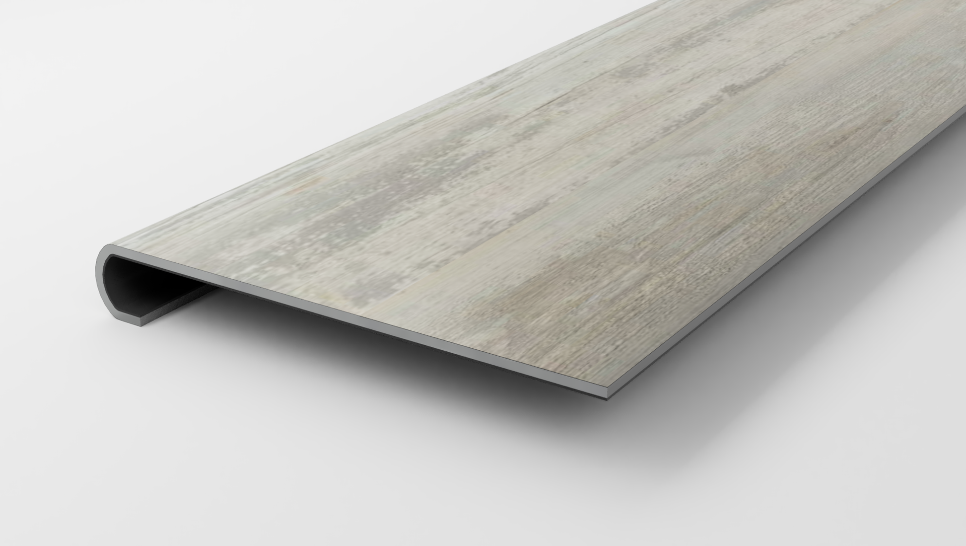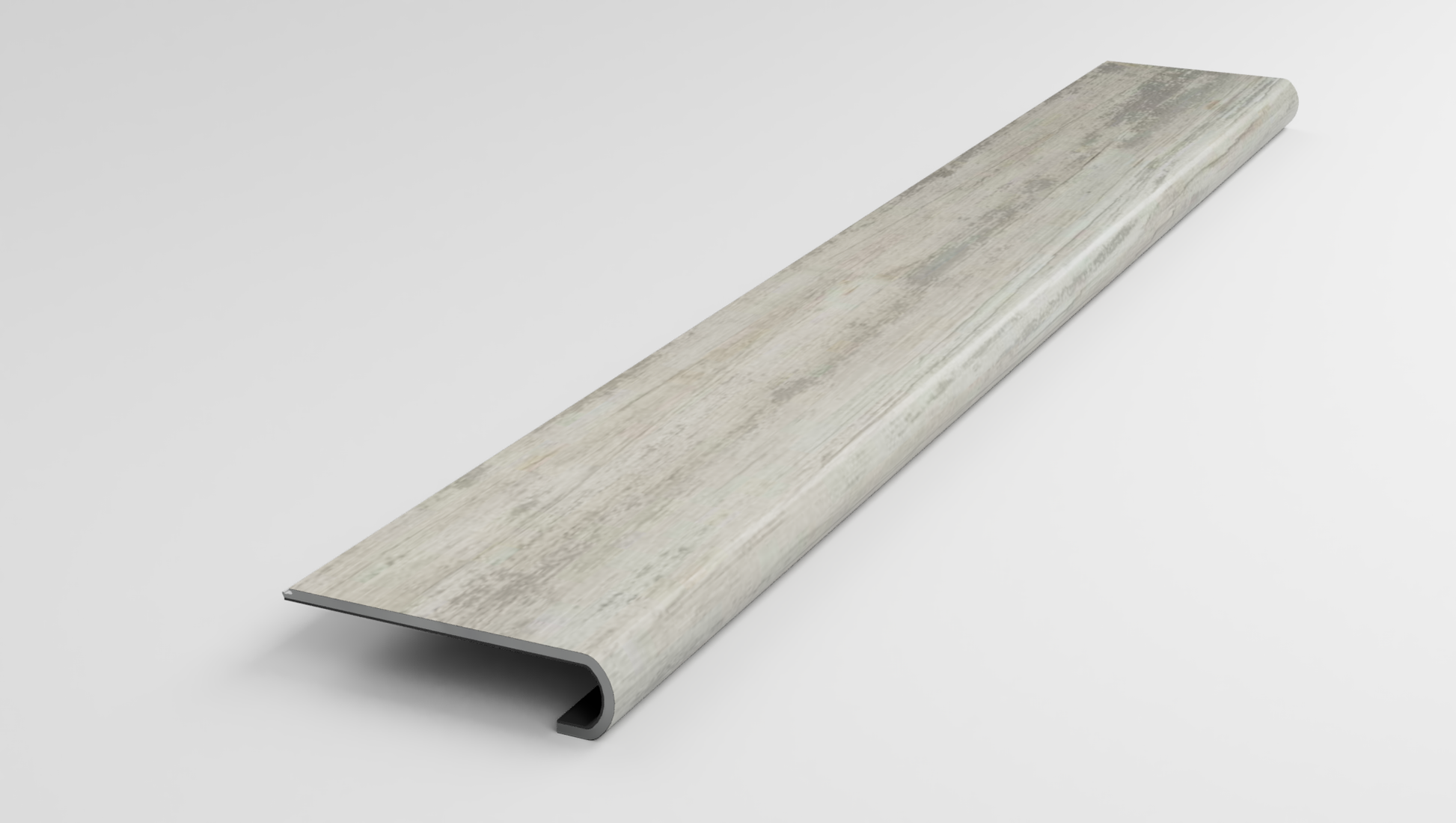 This variant is a Stair Nose made from a NuCore Coney Island Luxury Vinyl Plank. It is designed to be fitted and glued to the unfinished Stair Tread Nose. An addition NuCore Coney Island plank that you supply can be clicked in behind the nose to cover the remaining unfinished area.