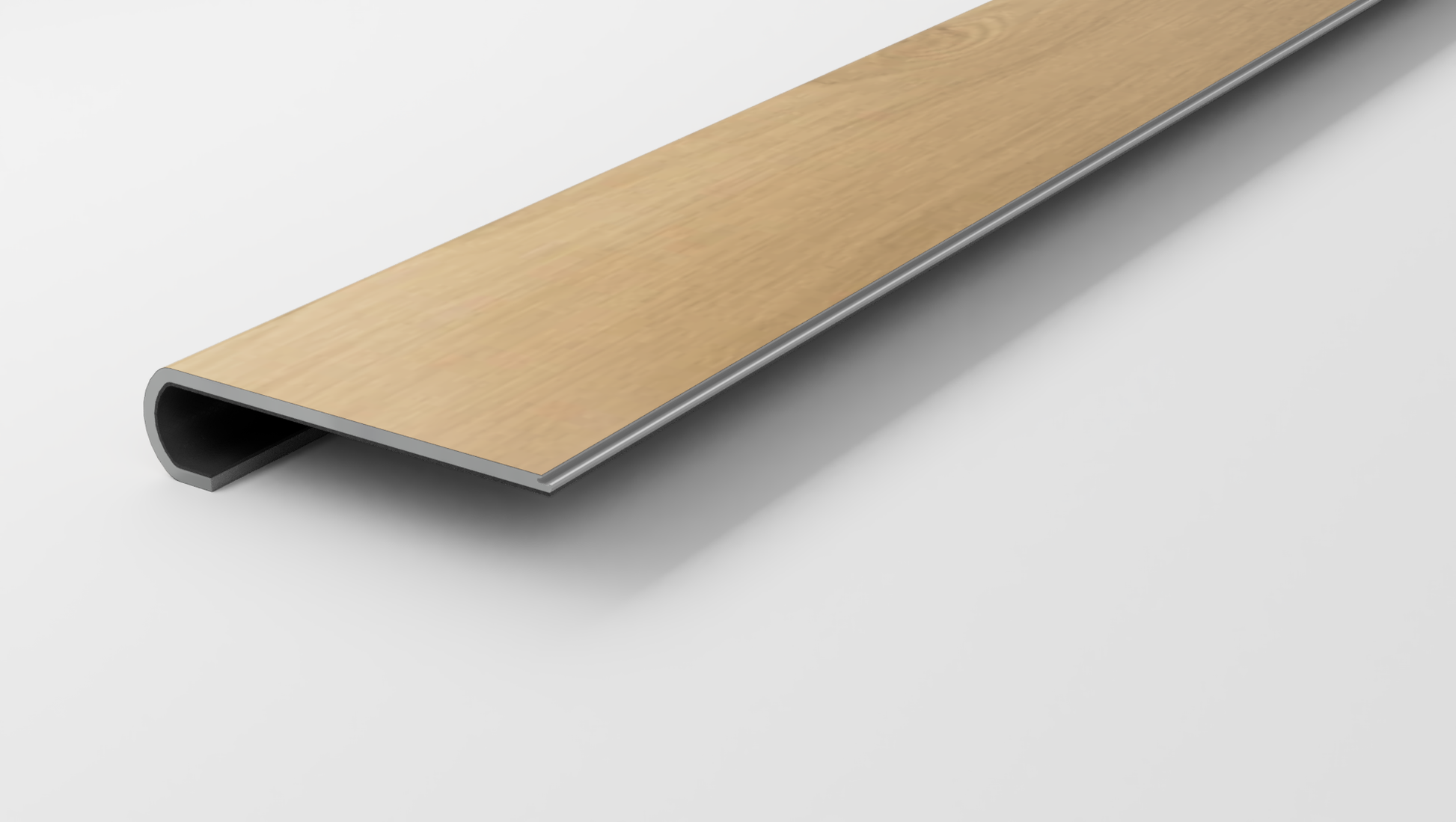 This variant fits 1-1/8 inch stair noses and has a length of 42 inches. It comes in a beautiful bull nose design.