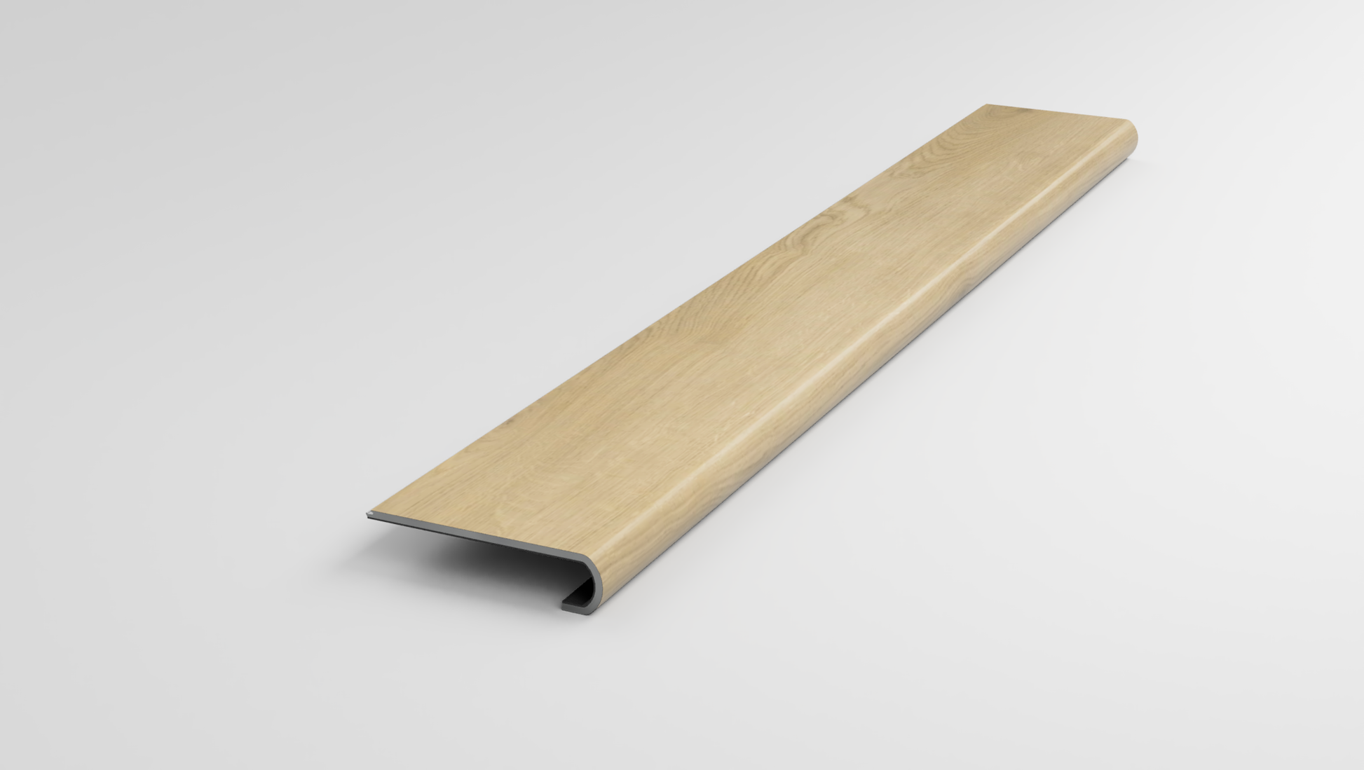 This variant fits 1-1/8 inch stair noses and has a length of 42 inches. It comes in a beautiful bull nose design.