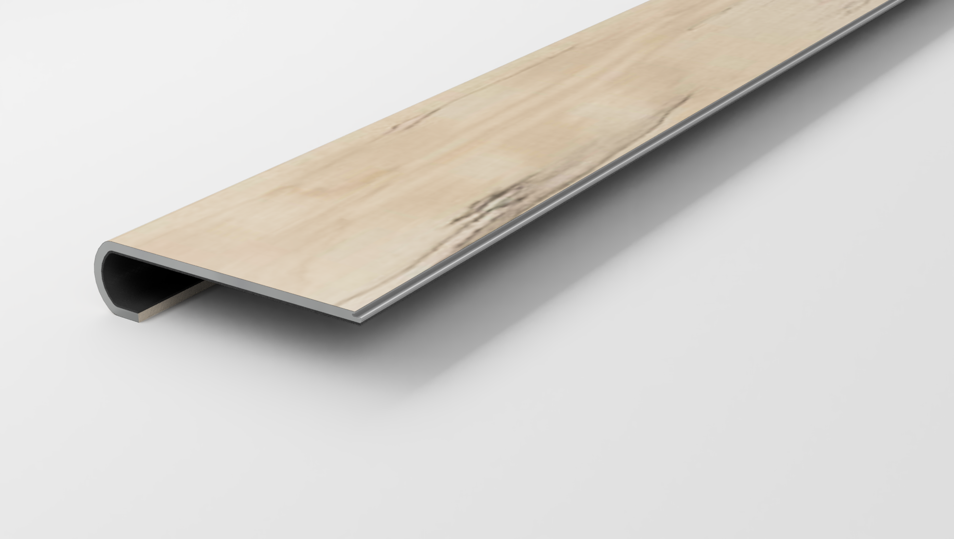 This variant fits 1-1/8 inch stair noses and has a length of 42 inches. It comes in a beautiful bull nose design.