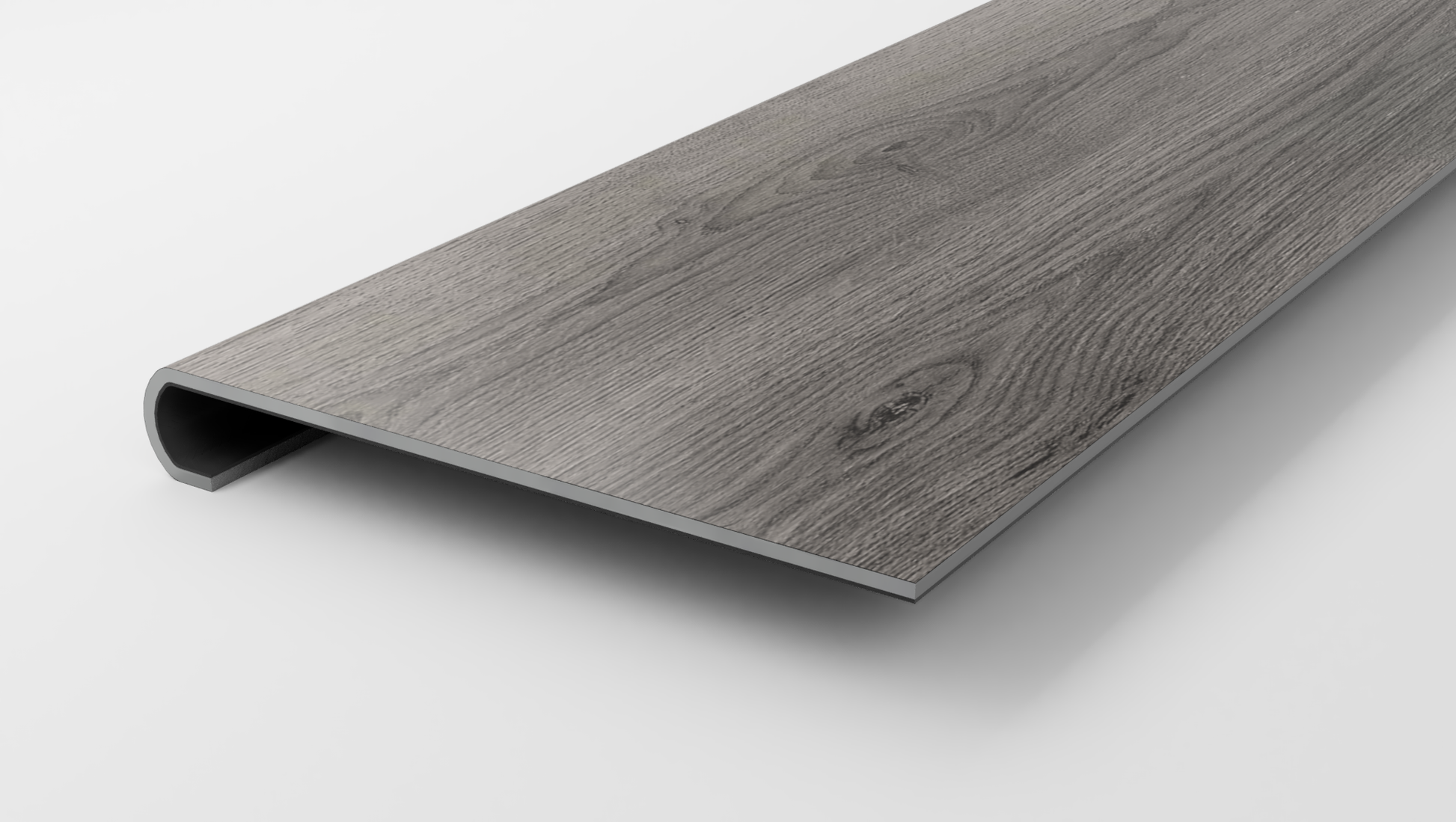 This variant is a Stair Nose made from a Select Surfaces Davenport Luxury Vinyl Plank. It is designed to be fitted and glued to the unfinished Stair Tread Nose. An addition Select Surfaces Davenport plank that you supply can be clicked in behind the nose to cover the remaining unfinished area.