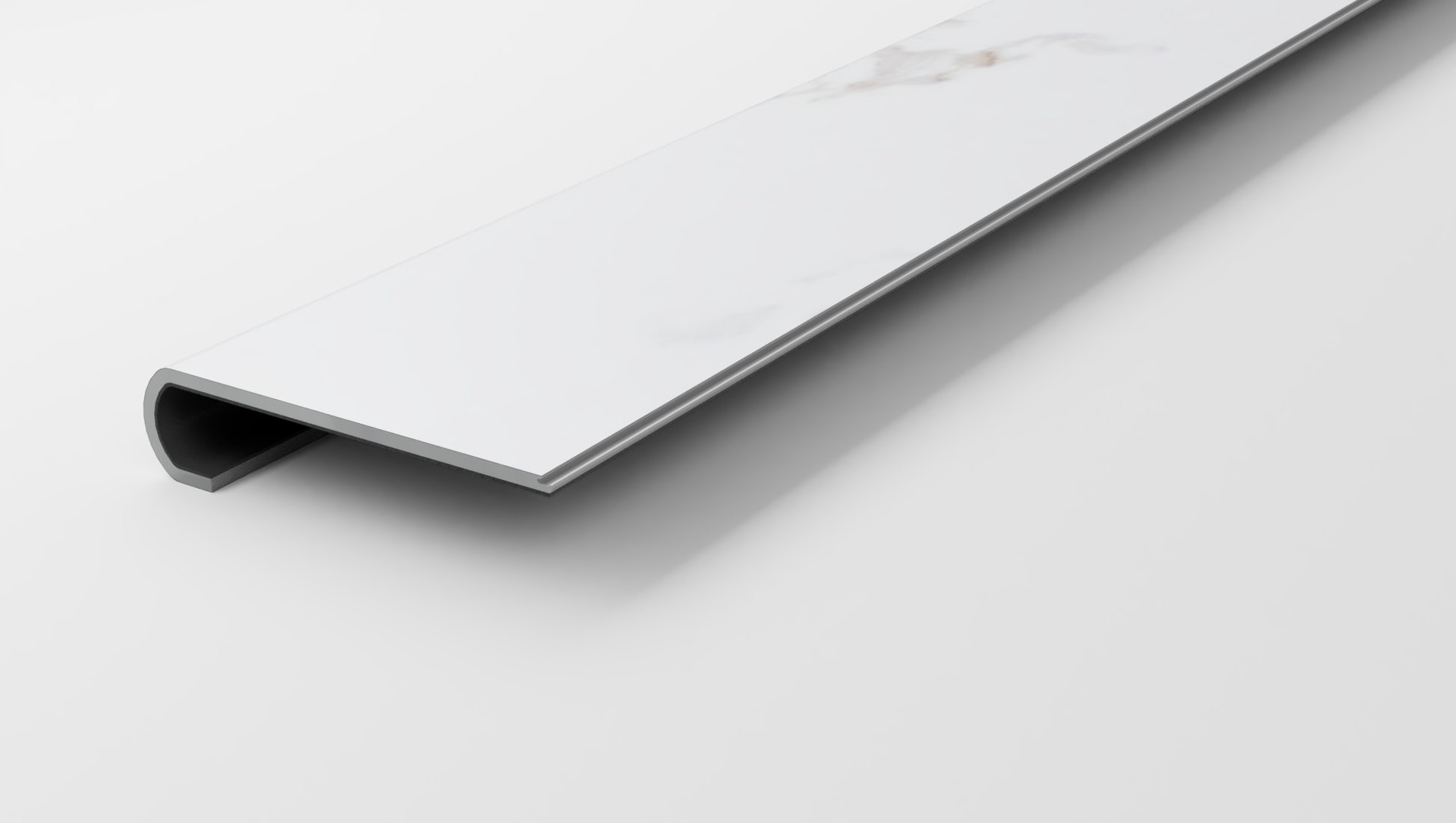 Made from Lifeproof Eagle Ridge Marble flooring, this Stair Nose will now allow you to use your favorite flooring on your stairs. Previously, you would have to use other tread brands that were made of subpar materials and only looked similar to your flooring! To make matters worse, a transition piece was often required at the top of the stairs posing both a hazard, and an eye sore. Treads Plus has made it possible to use true Lifeproof* Eagle Ridge Marble flooring to seamlessly transition from your flooring to your stairs.