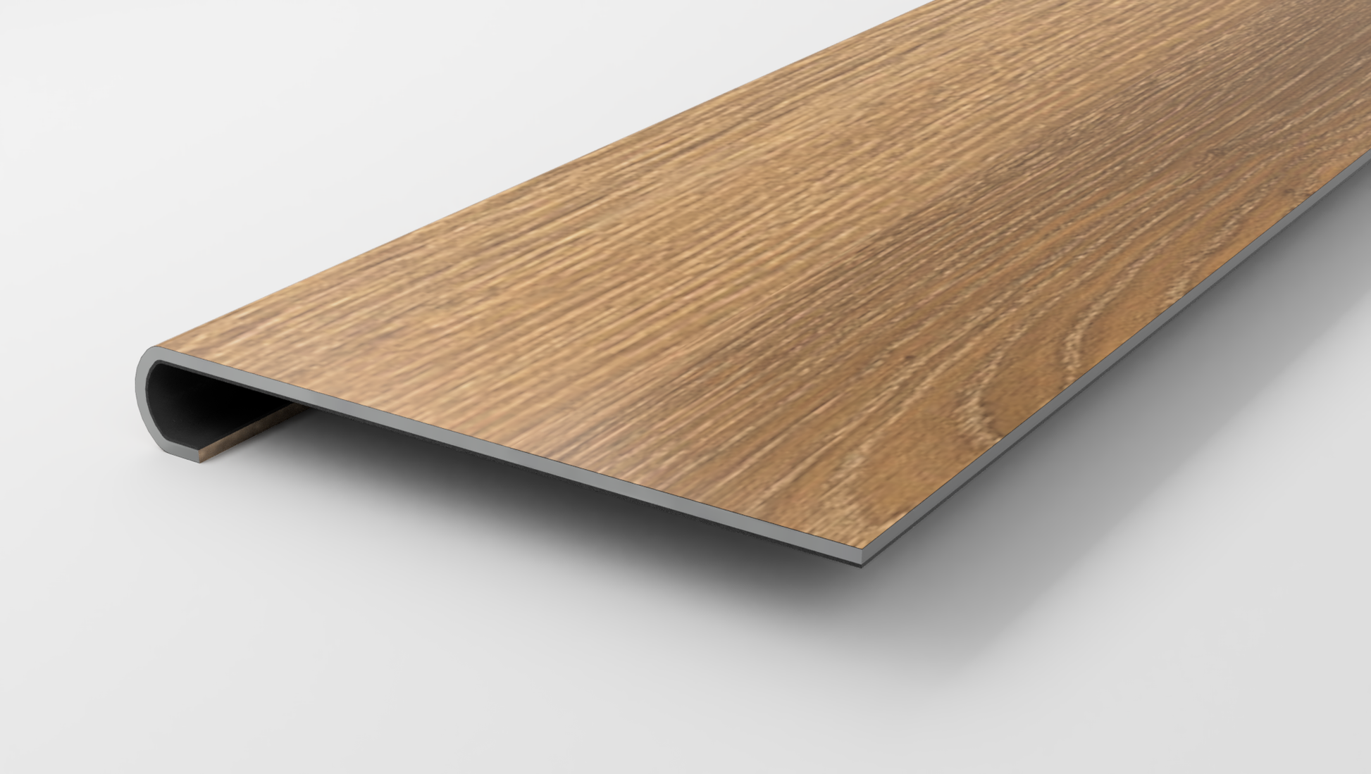This variant fits 1-1/8 inch stair noses and has a length of 42 inches. It comes in a beautiful bull nose design.
