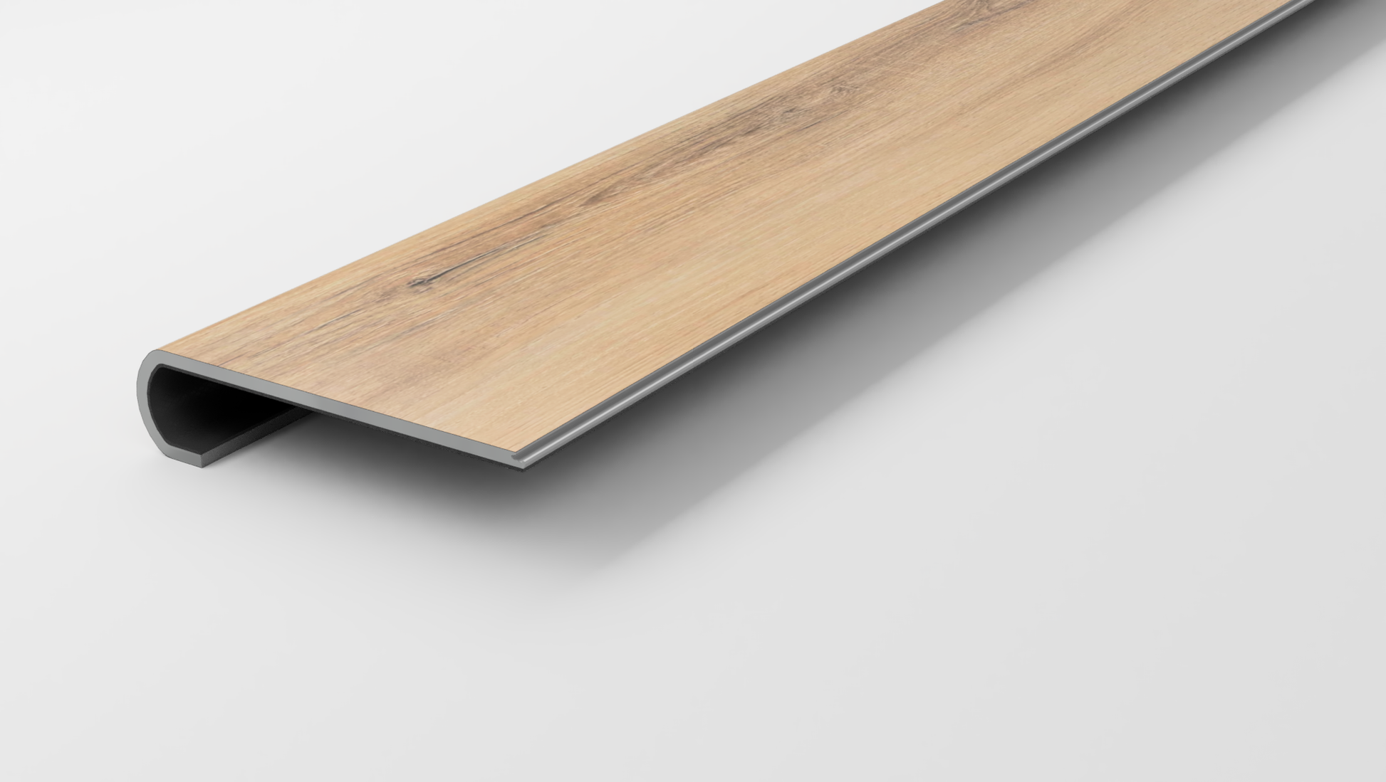 This variant fits 1-1/8 inch stair noses and has a length of 42 inches. It comes in a beautiful bull nose design.