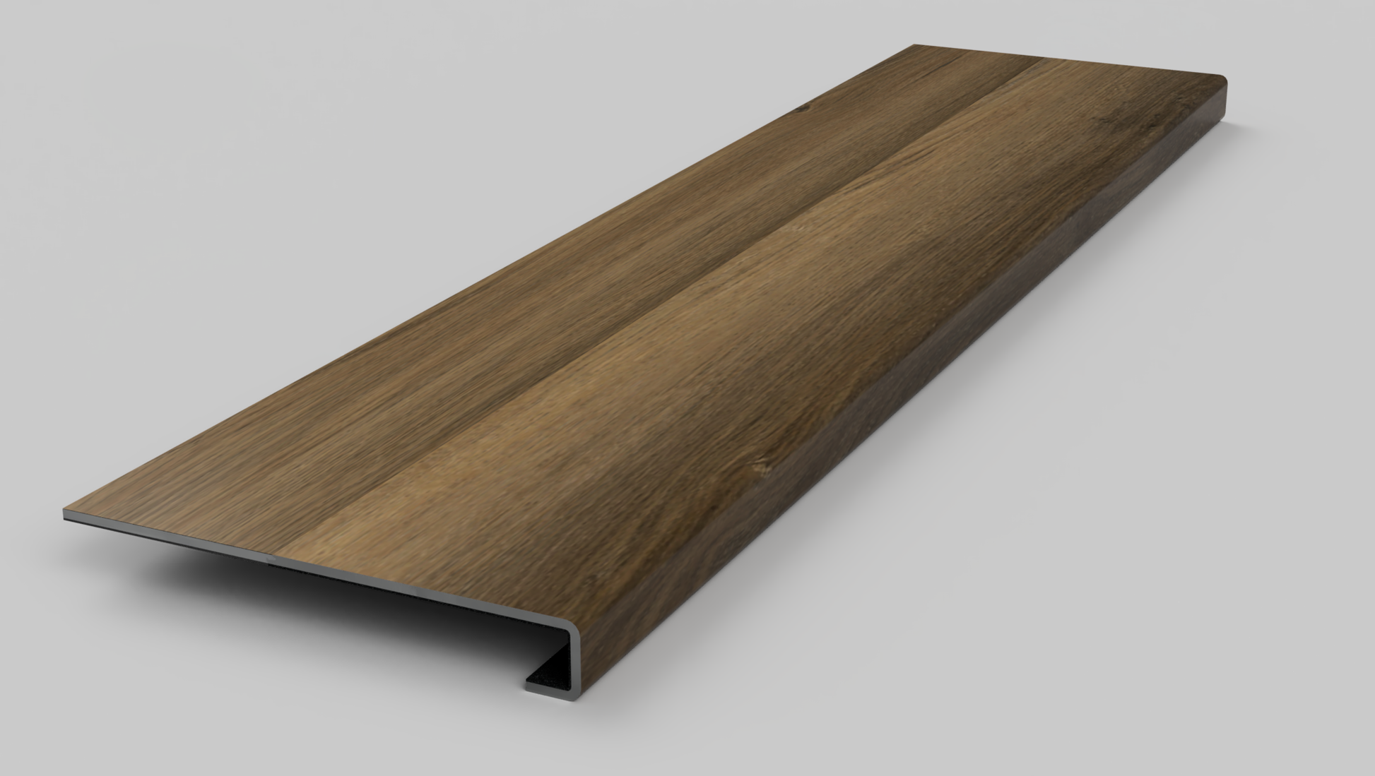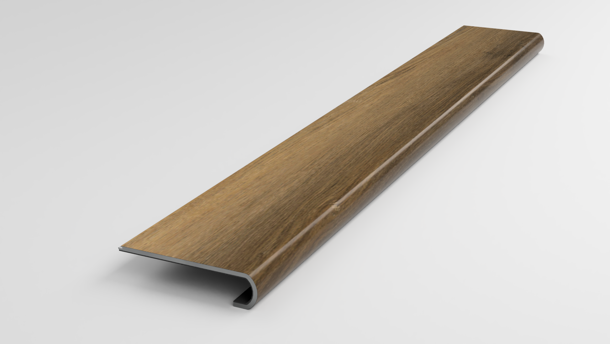 This variant is a Stair Nose made from a Titan Surfaces Epic WPC Rio Grande Luxury Vinyl Plank. It is designed to be fitted and glued to the unfinished Stair Tread Nose. An addition Titan Surfaces Epic WPC Rio Grande plank that you supply can be clicked in behind the nose to cover the remaining unfinished area.