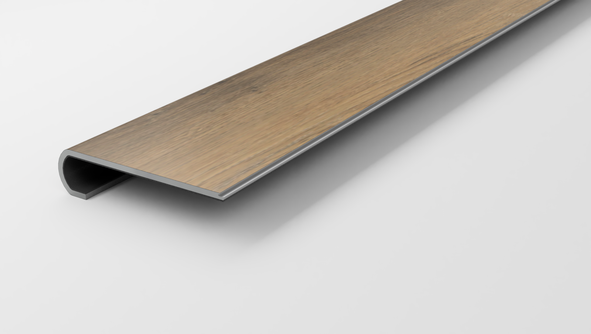 This variant fits 1-1/8 inch stair noses and has a length of 42 inches. It comes in a beautiful bull nose design.