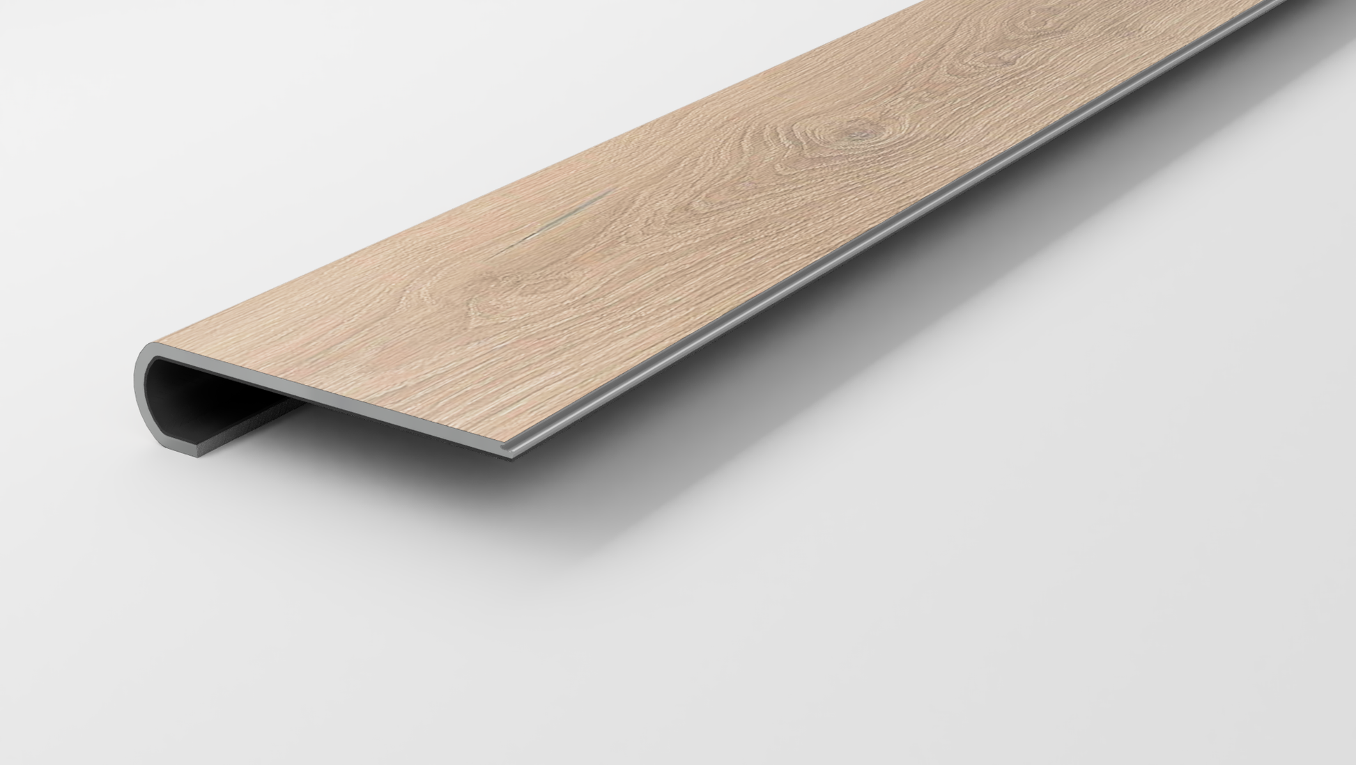This variant fits 1-1/8 inch stair noses and has a length of 42 inches. It comes in a beautiful Bullnose design.
