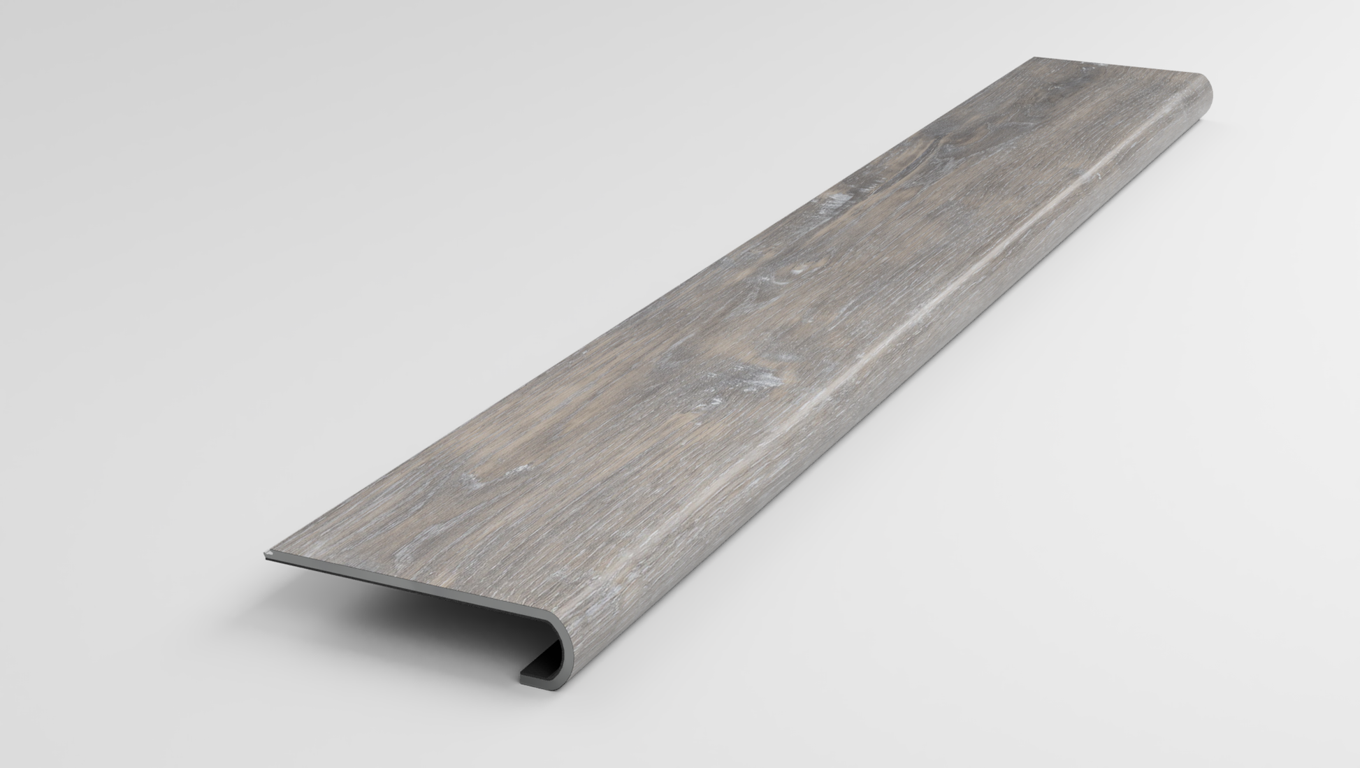 Made from MSI Everlife | Cyrus 2.0 | Finely flooring, this Stair Nose will now allow you to use your favorite flooring on your stairs. Previously, you would have to use other tread brands that were made of subpar materials and only looked similar to your flooring! To make matters worse, a transition piece was often required at the top of the stairs posing both a hazard, and an eye sore. Treads Plus has made it possible to use true MSI* Everlife | Cyrus 2.0 | Finely flooring to seamlessly transition from your flooring to your stairs.