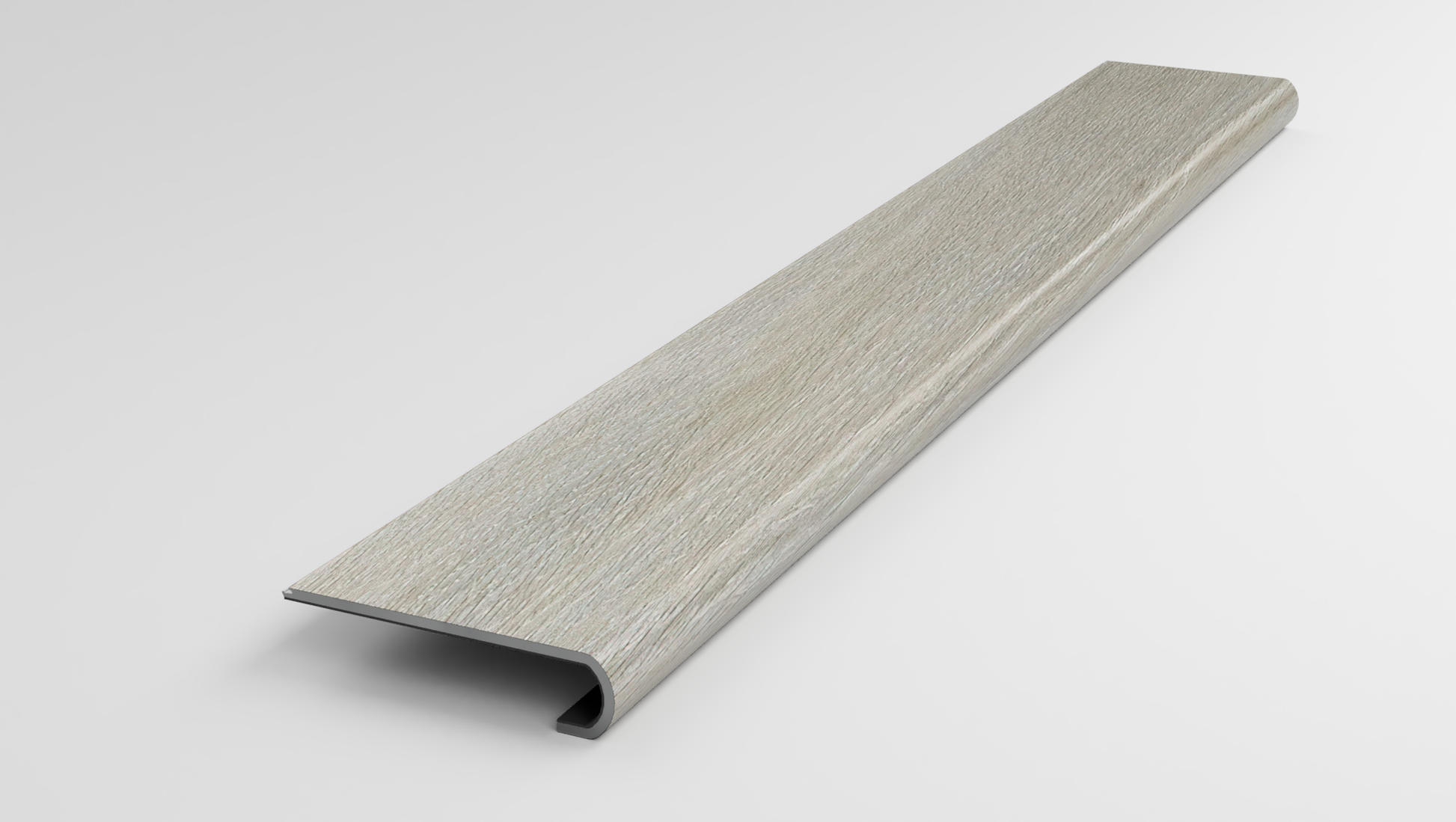This variant is a Stair Nose made from a Mohawk Explorers Cove Dazy Hazy Luxury Vinyl Plank. It is designed to be fitted and glued to the unfinished Stair Tread Nose. An addition Mohawk Explorers Cove Dazy Hazy plank that you supply can be clicked in behind the nose to cover the remaining unfinished area.