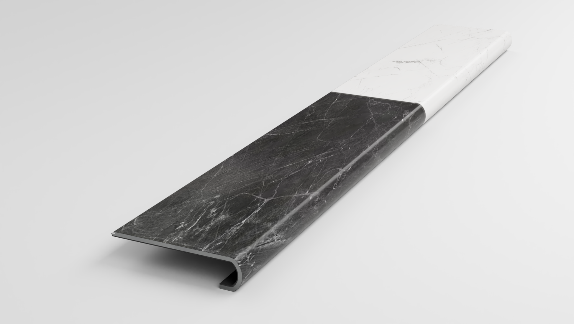 This variant is a Stair Nose made from a Duralux Performance Ferentino Noche Luxury Vinyl Plank. It is designed to be fitted and glued to the unfinished Stair Tread Nose. An addition Duralux Performance Ferentino Noche plank that you supply can be clicked in behind the nose to cover the remaining unfinished area.