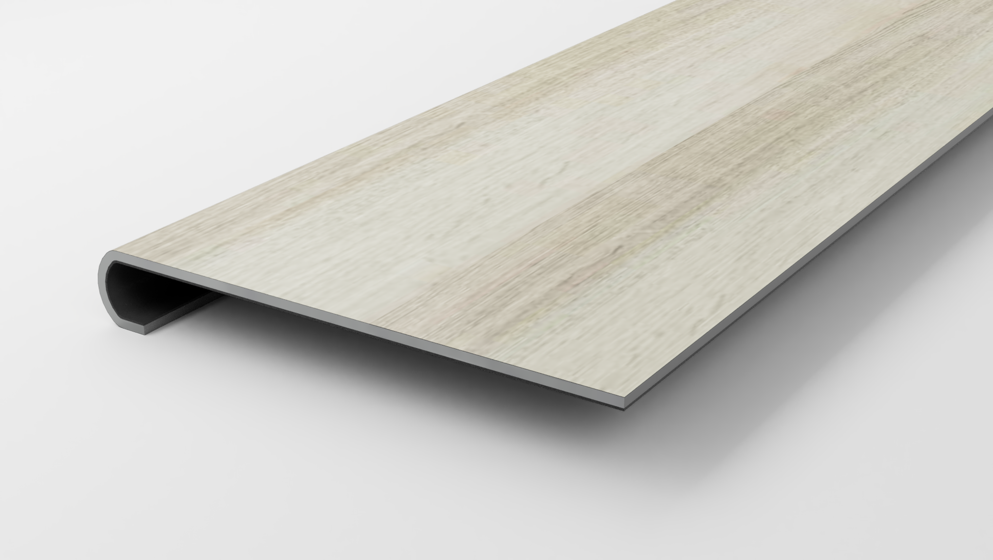 This variant is a Stair Nose made from a MSI Fireside Luxury Vinyl Plank. It is designed to be fitted and glued to the unfinished Stair Tread Nose. An addition MSI Fireside plank that you supply can be clicked in behind the nose to cover the remaining unfinished area.
