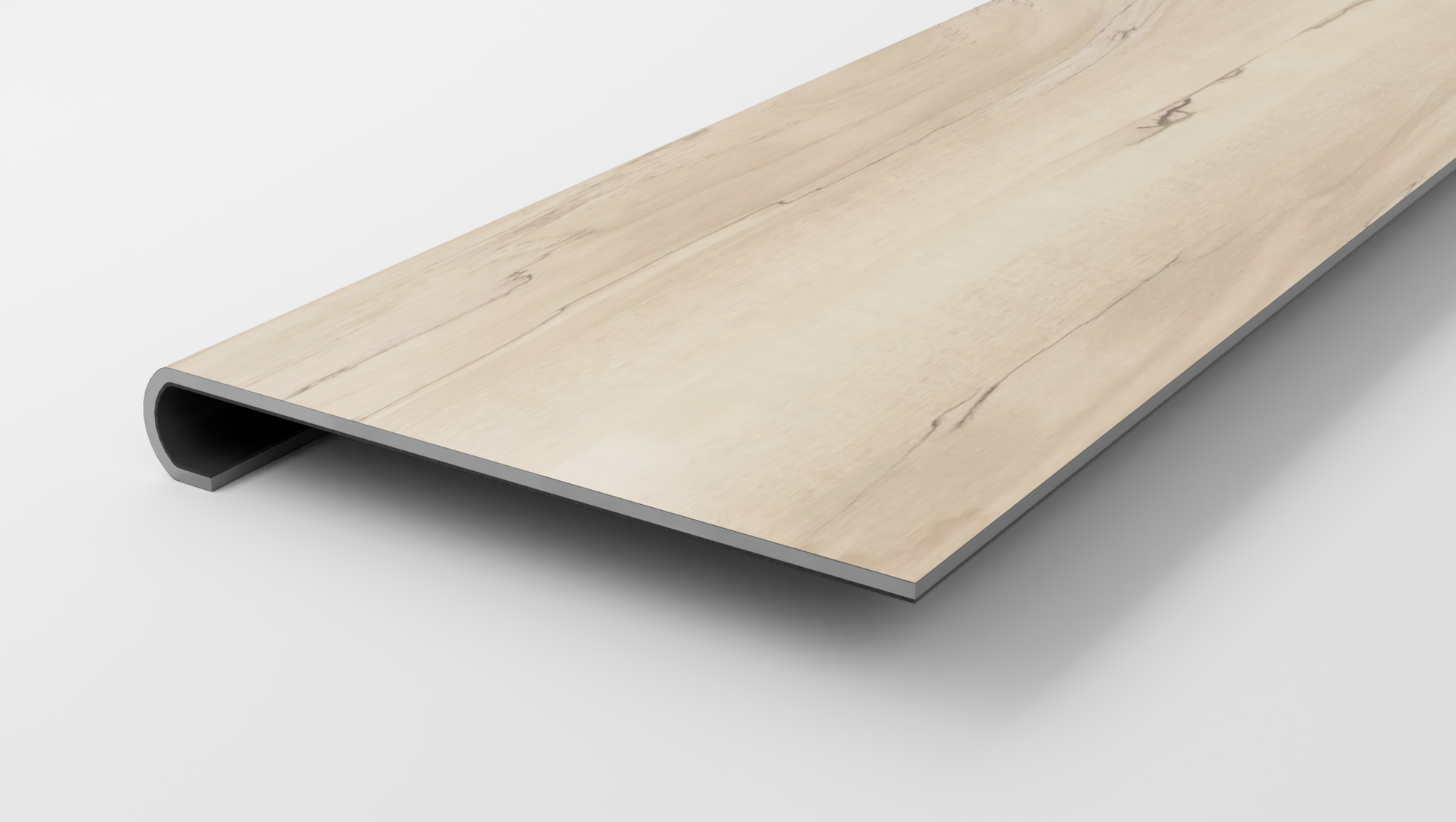 Made from Shaw Floorte Pro | Anvil Plus 20mil | Mineral Maple flooring, this Stair Nose will now allow you to use your favorite flooring on your stairs. Previously, you would have to use other tread brands that were made of subpar materials and only looked similar to your flooring! To make matters worse, a transition piece was often required at the top of the stairs posing both a hazard, and an eye sore. Treads Plus has made it possible to use true Shaw* Floorte Pro | Anvil Plus 20mil | Mineral Maple flooring to seamlessly transition from your flooring to your stairs.