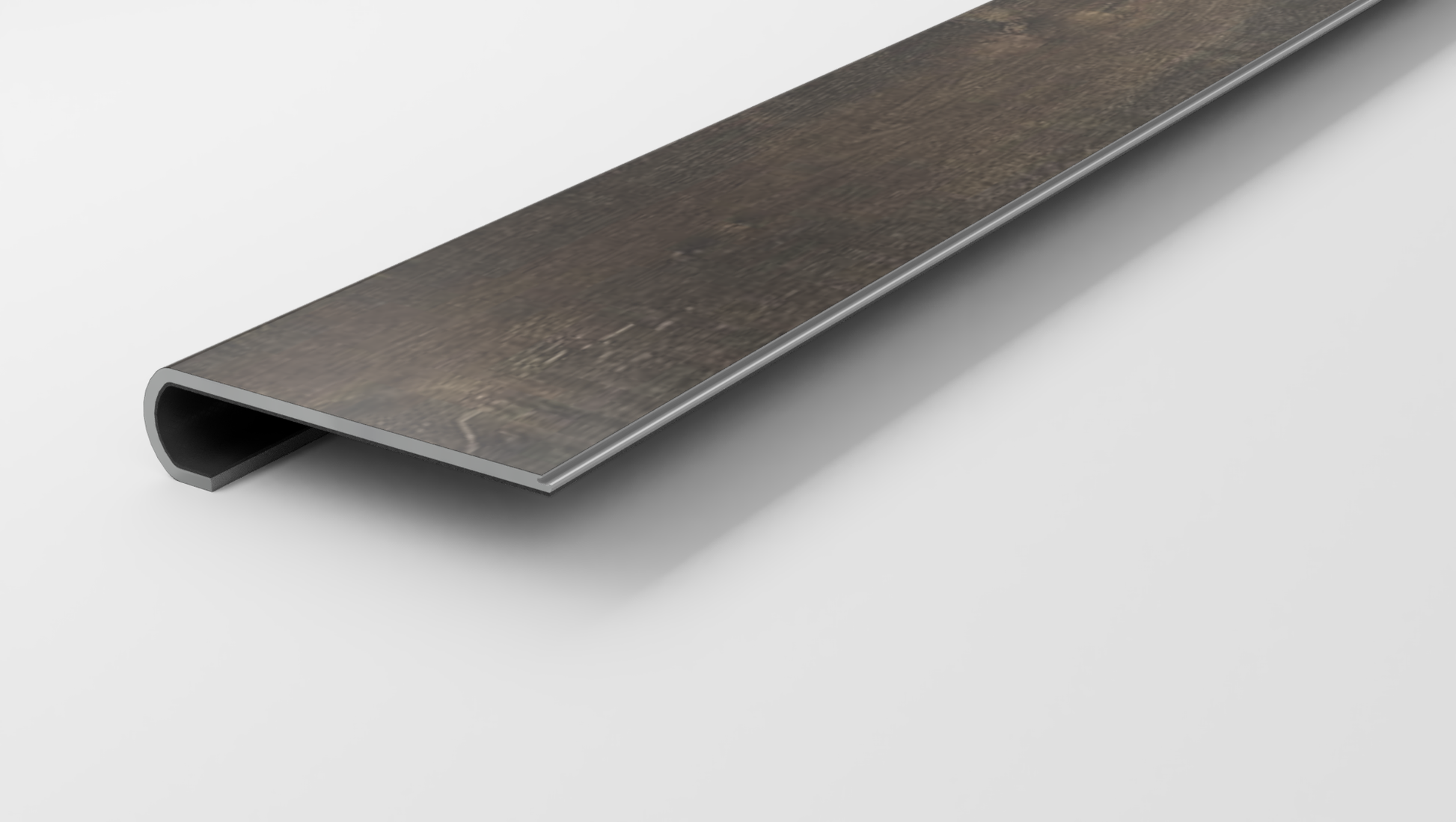 This variant fits 1-1/8 inch stair noses and has a length of 42 inches. It comes in a beautiful Bullnose design.