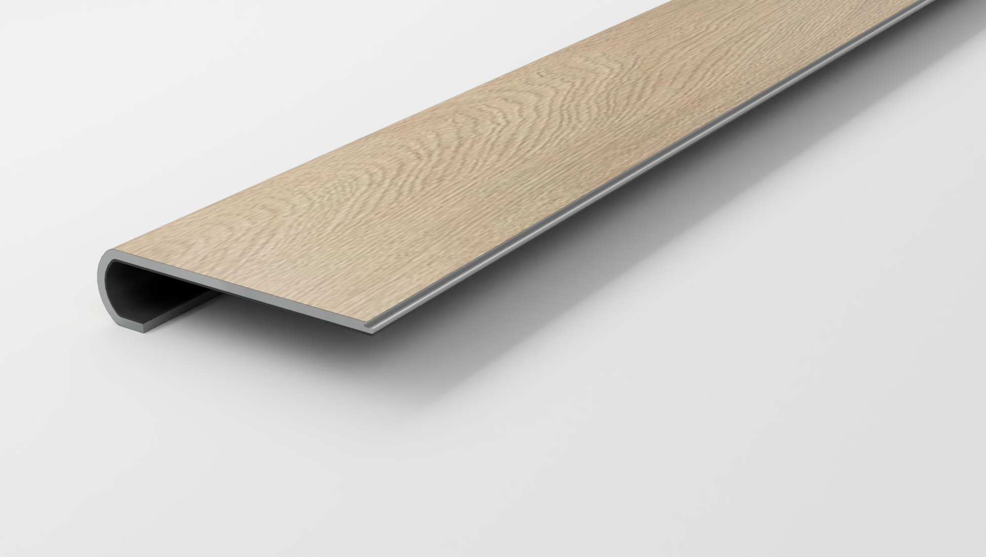 This variant fits 1-1/8 inch stair noses and has a length of 42 inches. It comes in a beautiful Bullnose design.