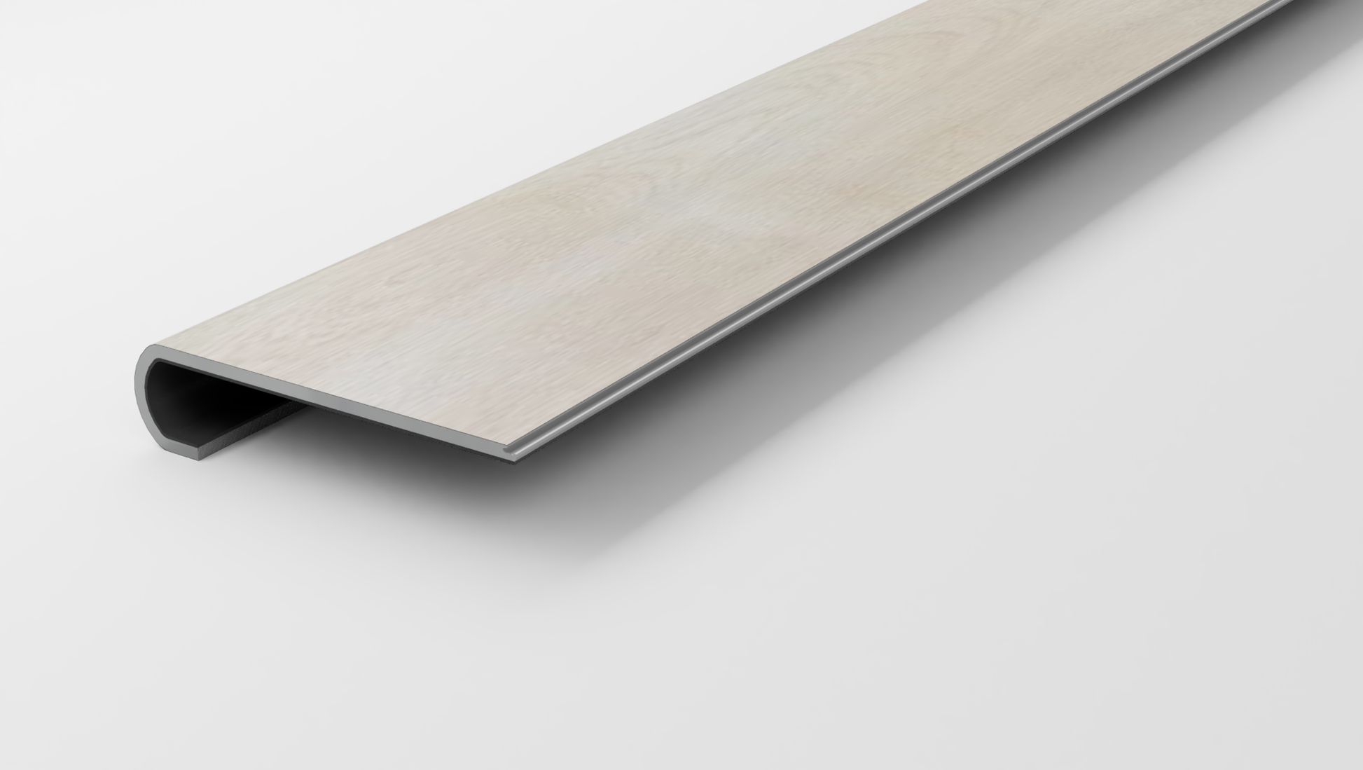This variant fits 1-1/8 inch stair noses and has a length of 42 inches. It comes in a beautiful Bullnose design.