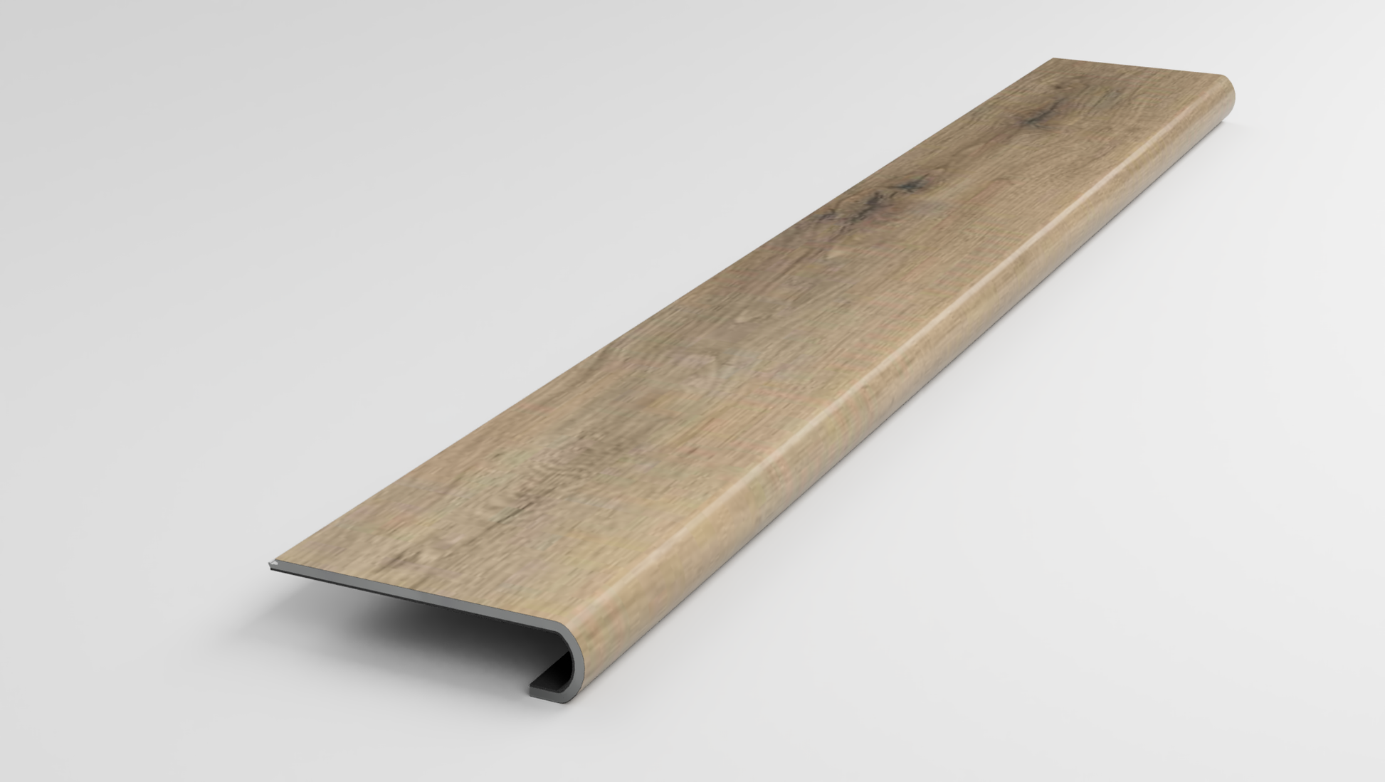 This variant is a Stair Nose made from a Shaw Grandview Angelina Luxury Vinyl Plank. It is designed to be fitted and glued to the unfinished Stair Tread Nose. An addition Shaw Grandview Angelina plank that you supply can be clicked in behind the nose to cover the remaining unfinished area.