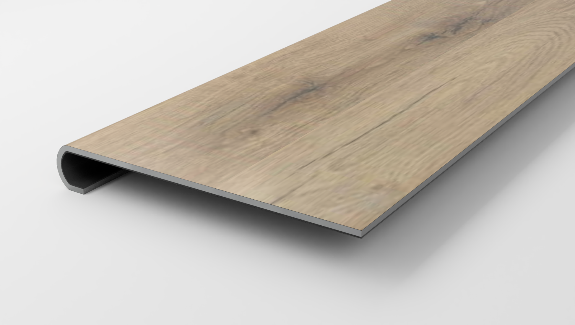 Made from Shaw Grandview Angelina flooring, this Stair Nose will now allow you to use your favorite flooring on your stairs. Previously, you would have to use other tread brands that were made of subpar materials and only looked similar to your flooring! To make matters worse, a transition piece was often required at the top of the stairs posing both a hazard, and an eye sore. Treads Plus has made it possible to use true Shaw* Grandview Angelina flooring to seamlessly transition from your flooring to your stairs.
