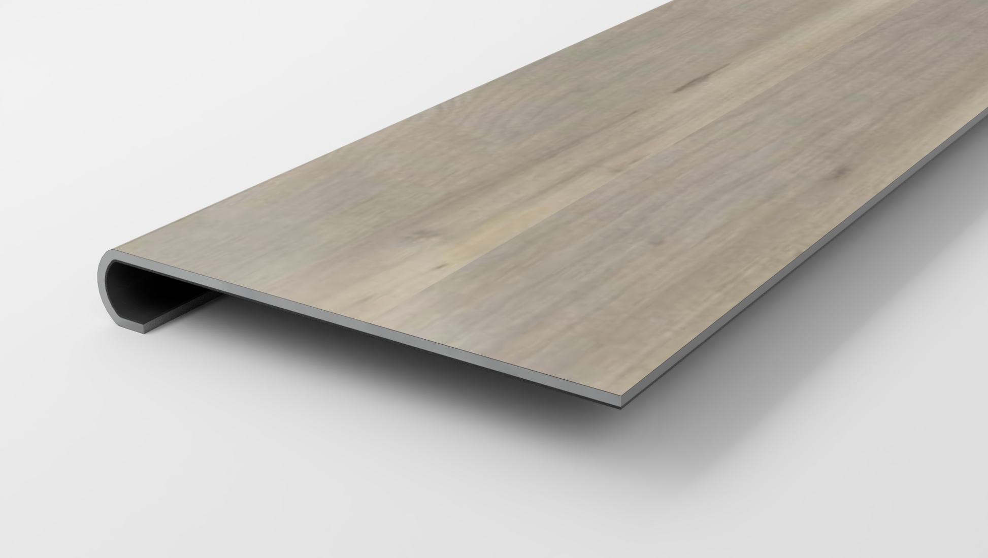 Made from Shaw Grandview Lancaster flooring, this Stair Nose will now allow you to use your favorite flooring on your stairs. Previously, you would have to use other tread brands that were made of subpar materials and only looked similar to your flooring! To make matters worse, a transition piece was often required at the top of the stairs posing both a hazard, and an eye sore. Treads Plus has made it possible to use true Shaw* Grandview Lancaster flooring to seamlessly transition from your flooring to your stairs.
