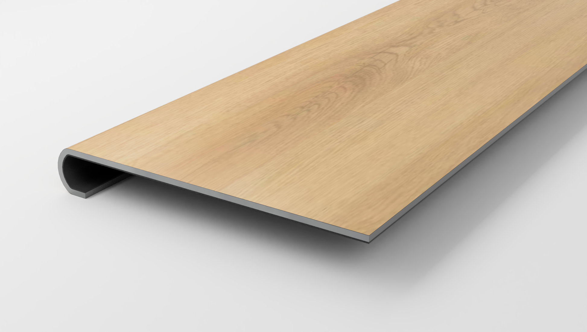 Made from Lifeproof* Hidden Lake flooring, this Stair Nose will now allow you to use your favorite flooring on your stairs. Previously, you would have to use other tread brands that were made of subpar materials and only looked similar to your flooring! To make matters worse, a transition piece was often required at the top of the stairs posing both a hazard, and an eye sore. Treads Plus has made it possible to use true Lifeproof* Hidden Lake flooring to seamlessly transition from your flooring to your stairs.