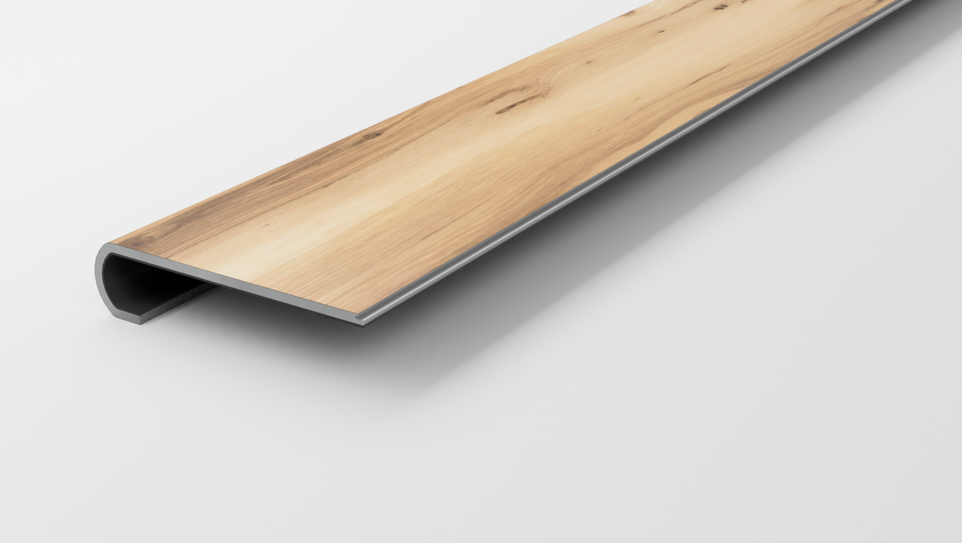 This variant fits 1-1/8 inch stair noses and has a length of 42 inches. It comes in a beautiful Bullnose design.