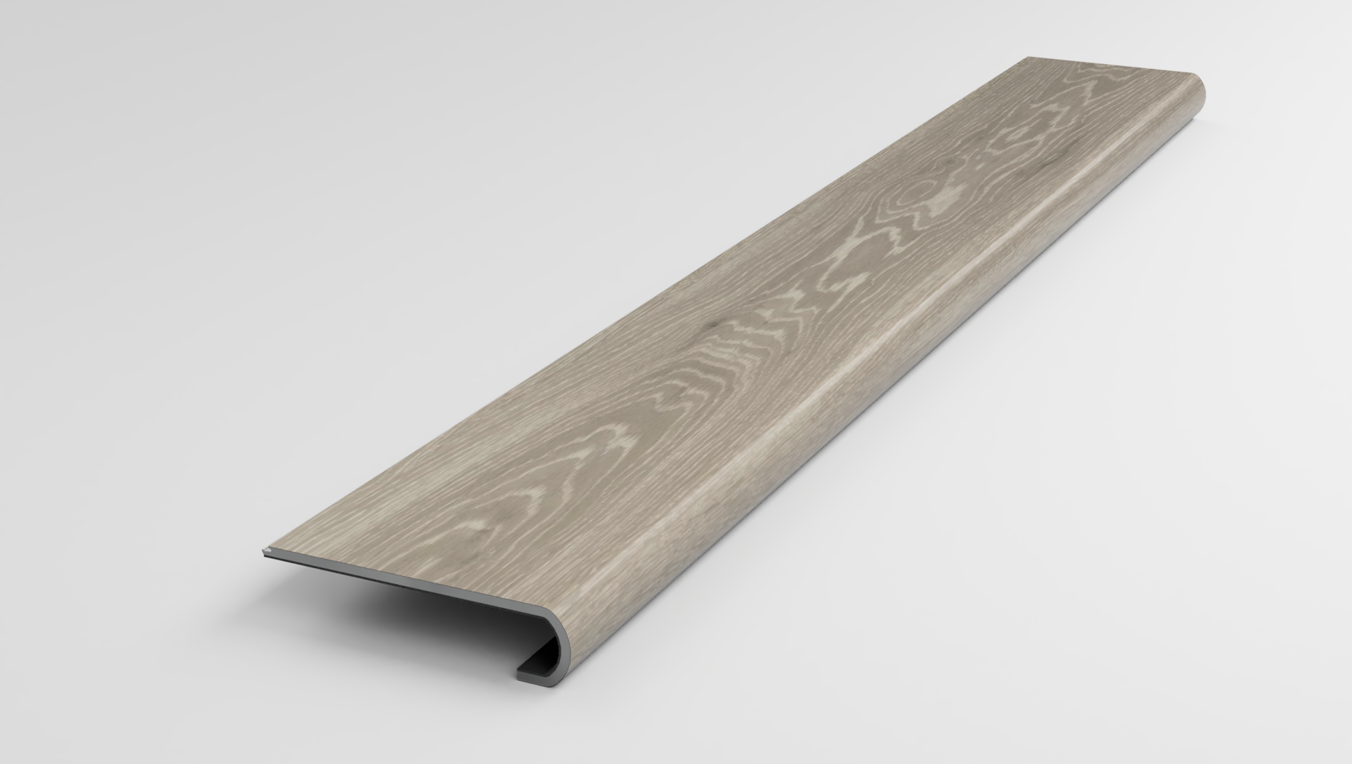 This variant is a Stair Nose made from a Shaw Korlok Select | Grey Loire Oak Luxury Vinyl Plank. It is designed to be fitted and glued to the unfinished Stair Tread Nose. An addition Shaw Korlok Select | Grey Loire Oak plank that you supply can be clicked in behind the nose to cover the remaining unfinished area.