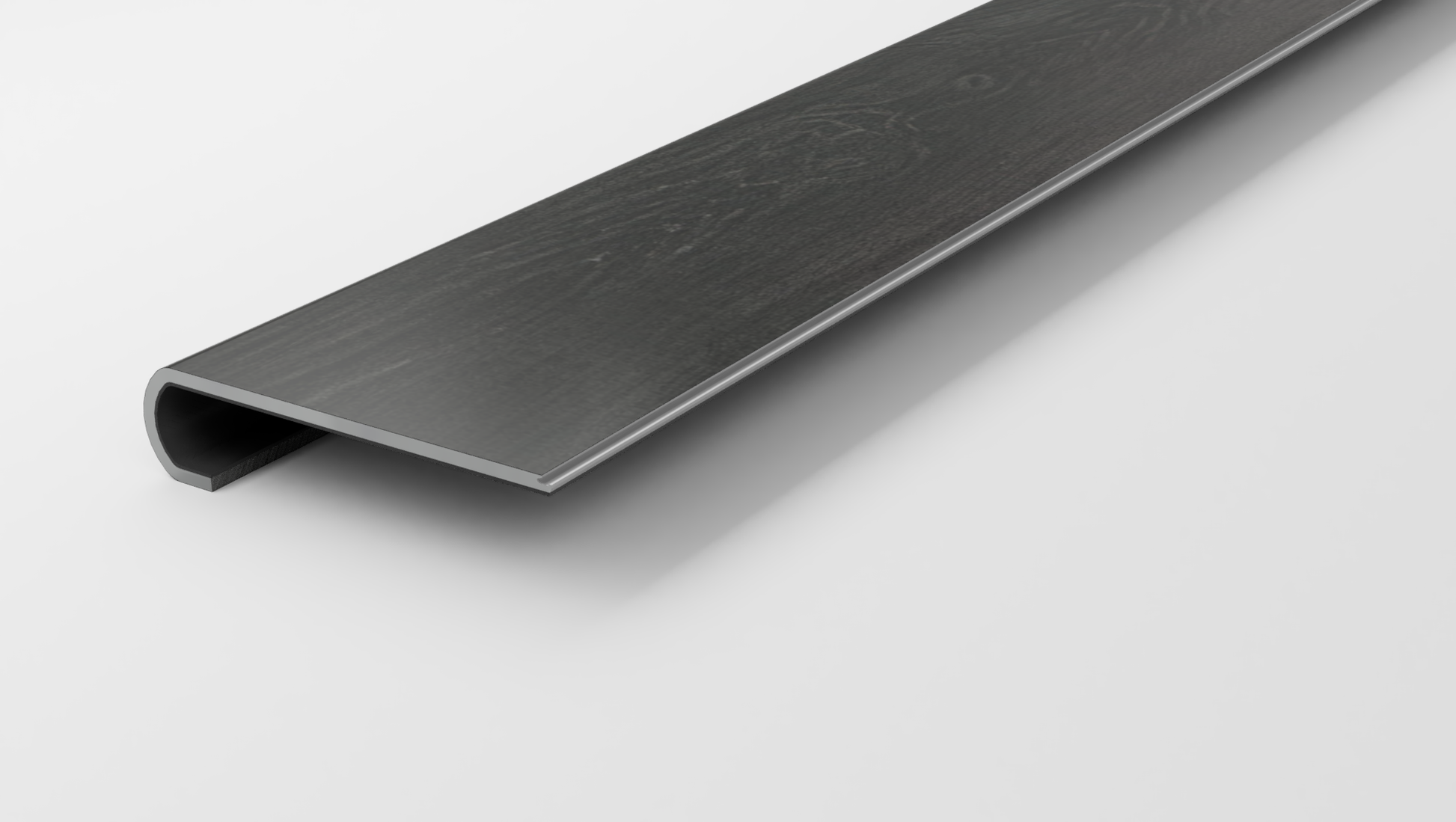 This variant fits 1-1/8 inch stair noses and has a length of 42 inches.  It comes in a beautiful Bullnose design.