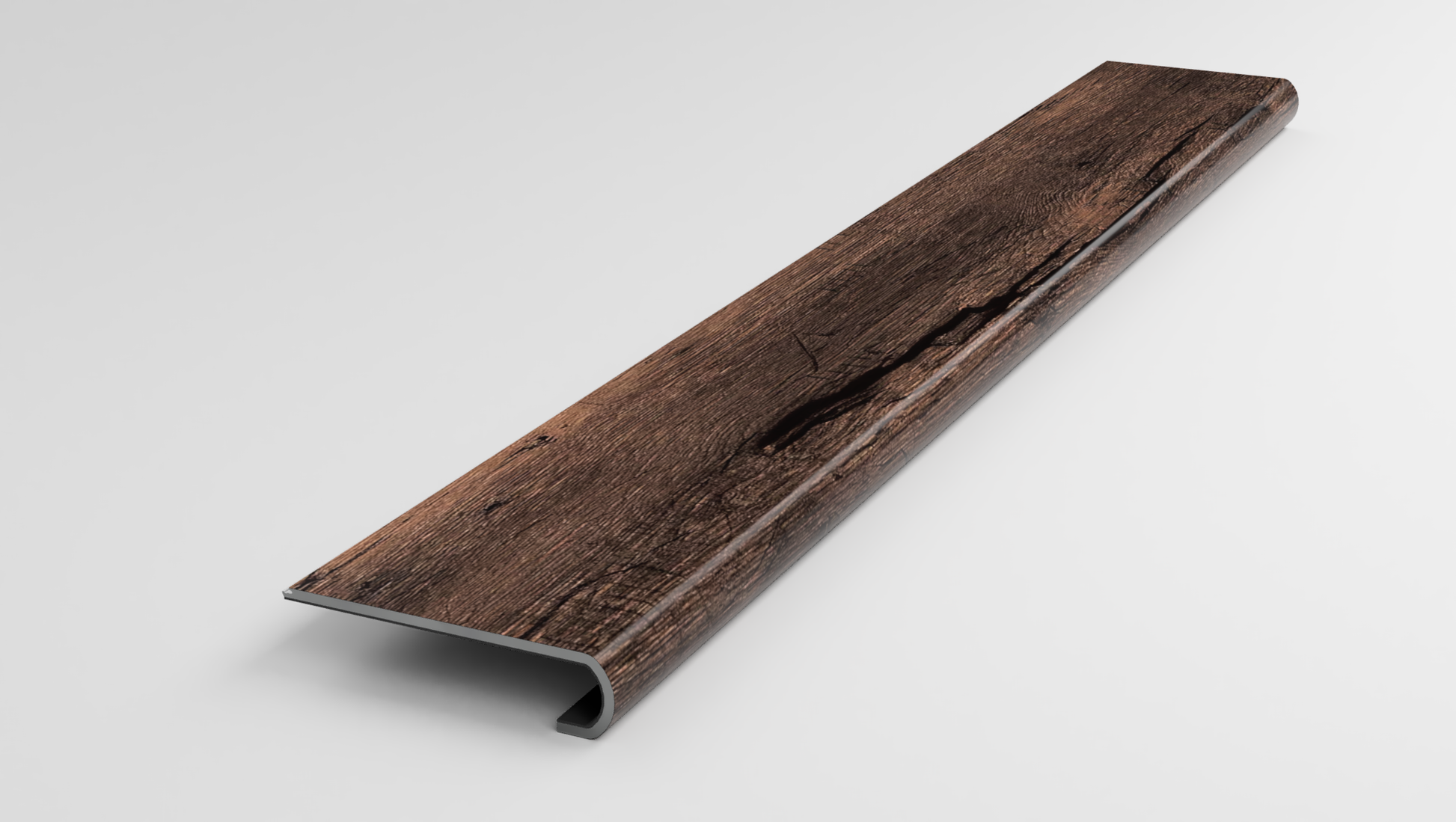 This variant is a Stair Nose made from a Select Surfaces Mahogany Luxury Vinyl Plank. It is designed to be fitted and glued to the unfinished Stair Tread Nose. An addition Select Surfaces Mahogany plank that you supply can be clicked in behind the nose to cover the remaining unfinished area.