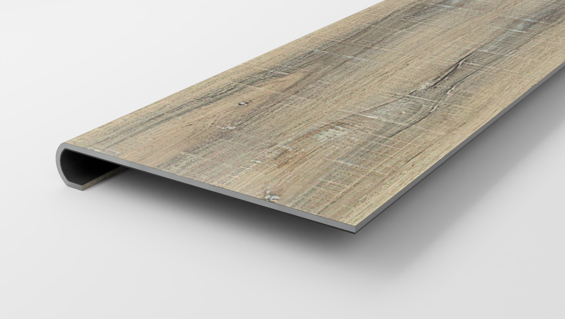 This variant is a Stair Nose made from a Mohawk Explorers Cove New Silhouette Luxury Vinyl Plank. It is designed to be fitted and glued to the unfinished Stair Tread Nose. An addition Mohawk Explorers Cove New Silhouette plank that you supply can be clicked in behind the nose to cover the remaining unfinished area.