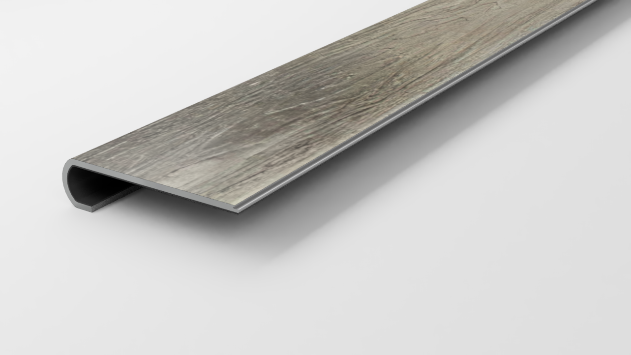 This variant is a Stair Nose made from a Mohawk Explorers Cove Raccoon Luxury Vinyl Plank. It is designed to be fitted and glued to the unfinished Stair Tread Nose. An addition Mohawk Explorers Cove Raccoon plank that you supply can be clicked in behind the nose to cover the remaining unfinished area.