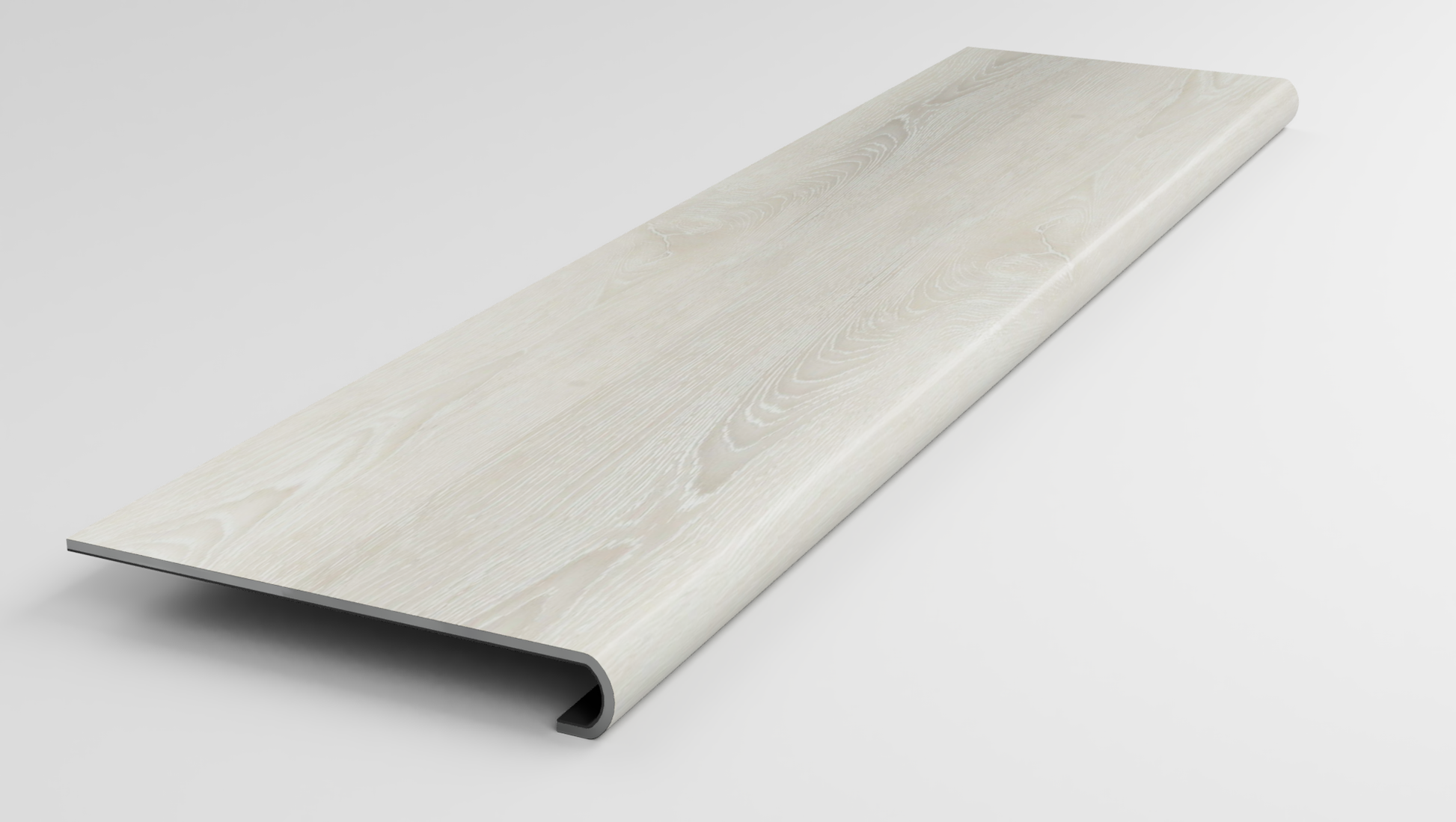 This variant is a Stair Nose made from a NuCore* Chiffon Ceruse Luxury Vinyl Plank. It is designed to be fitted and glued to the unfinished Stair Tread Nose. An addition NuCore* Chiffon Ceruse plank that you supply can be clicked in behind the nose to cover the remaining unfinished area.