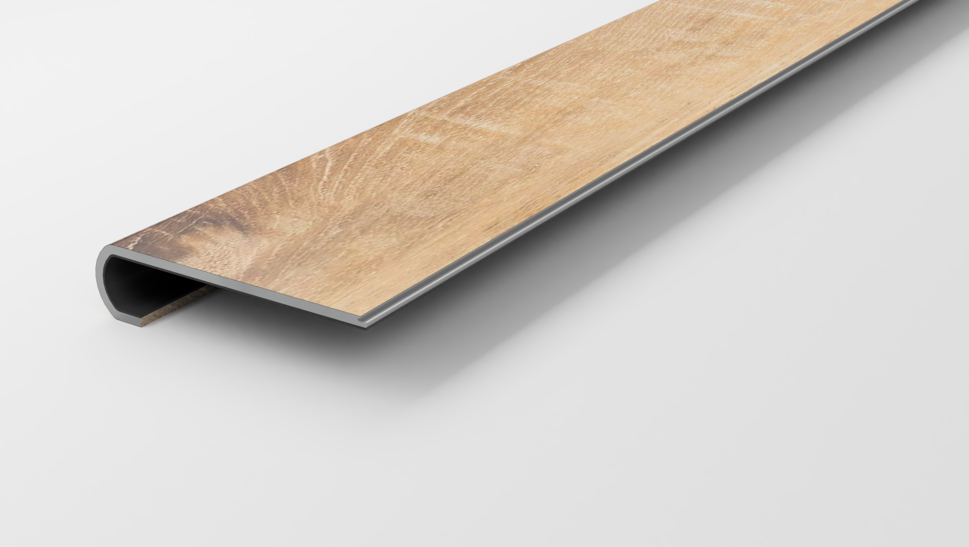 This variant fits 1-1/8 inch stair noses and has a length of 42 inches. It comes in a beautiful Bullnose design.